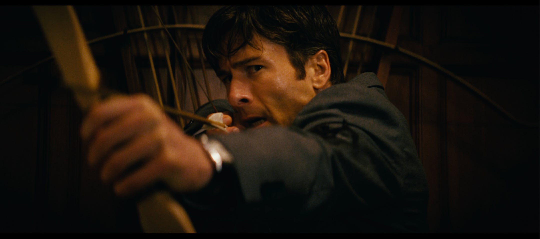 This all works thanks to the colorful character work, but our protagonist at the center of it all is a void. Becket is a chameleon, unknowable to those around him, but also unknown to the audience. His desires seem surface-level, and his reasons for continuing his dangerous quest are shoehorned in via an awkward plot device in the form of Margaret Qualley as a childhood crush, Julia, who waltzes back into his life. Qualley feels like she’s in an entirely different movie than everyone else, an oddball femme fatale clad in boucle Chanel skirt suits with mysterious motivations and a deadpan attitude.