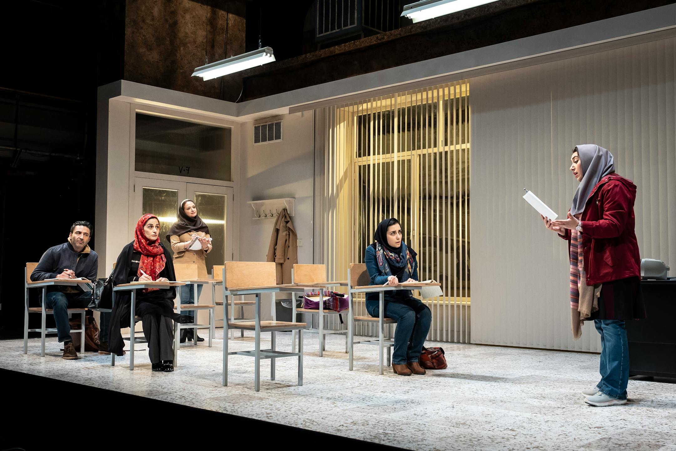 The “English” class is led by Marjan (Roxanna Hope Radja), an understanding but stern taskmaster who formerly lived in Manchester, England, and now teaches English partly to keep her world expansive. But that’s not how Elham (Nikki Massoud), who wants to study medicine in Australia, sees it. She is suspicious of the way Marjan elevates a foreign language above her native tongue, Farsi.