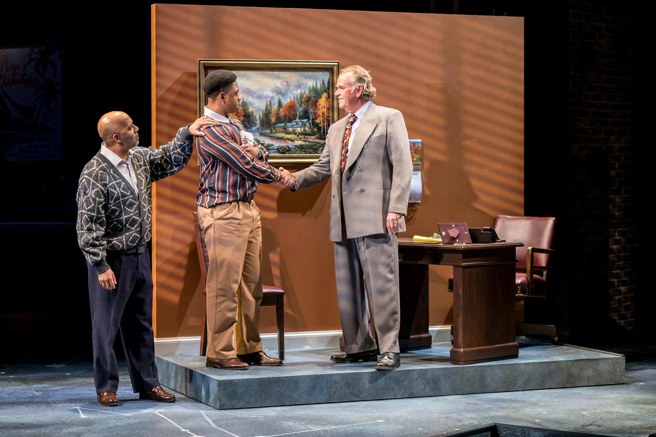 Using service bells and variable lights, director Marshall Jones III has found a wonderful cadence to toggle between Kenneth’s reality and his inner life. The action plays out on Sara Ryung Clement’s large, yawning set.