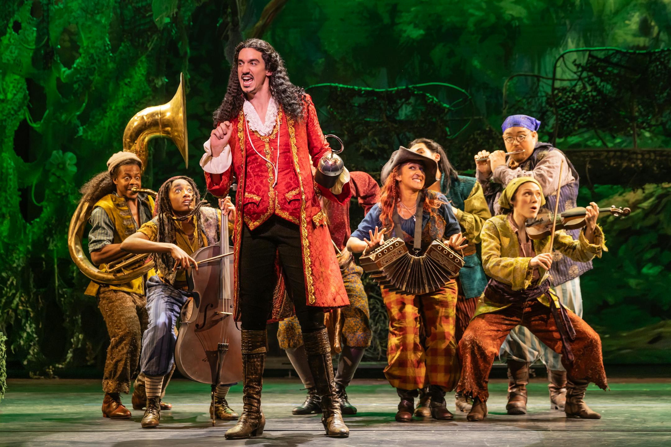 The design is similarly arresting. Anna Louizos' green-tinged, environmentally conscious scenography is coupled with David Bengali's projections to make you feel like you're riding a rollercoaster through the stars. The action readily zips viewers from the Darlings' humdrum house to pirate ships and to Neverland.