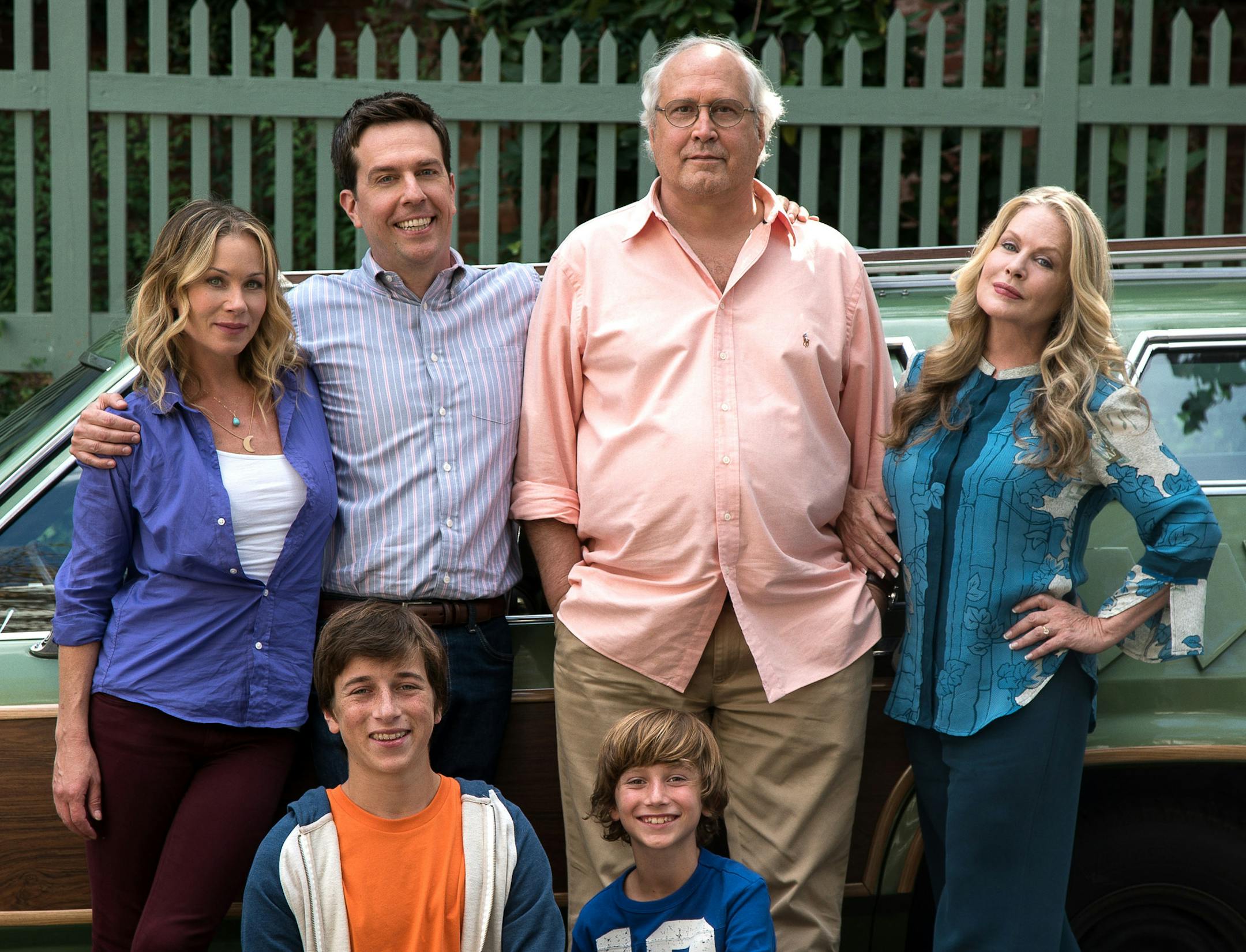 Helms, bless his heart, does his darndest. The eternal optimism and cheerful naiveté that he brings to patriarch Rusty are endearing, if baffling, in the face of disaster, humiliation and other bodily horrors rained upon the Griswolds. At one point, he happily begins to scrub a bloodstained shower with a Brillo pad of body hair, which is after his wife Debbie (Christina Applegate) upchucks an entire pitcher of beer, and before the entire family flops about in the raw sewage of "Griswold Springs."