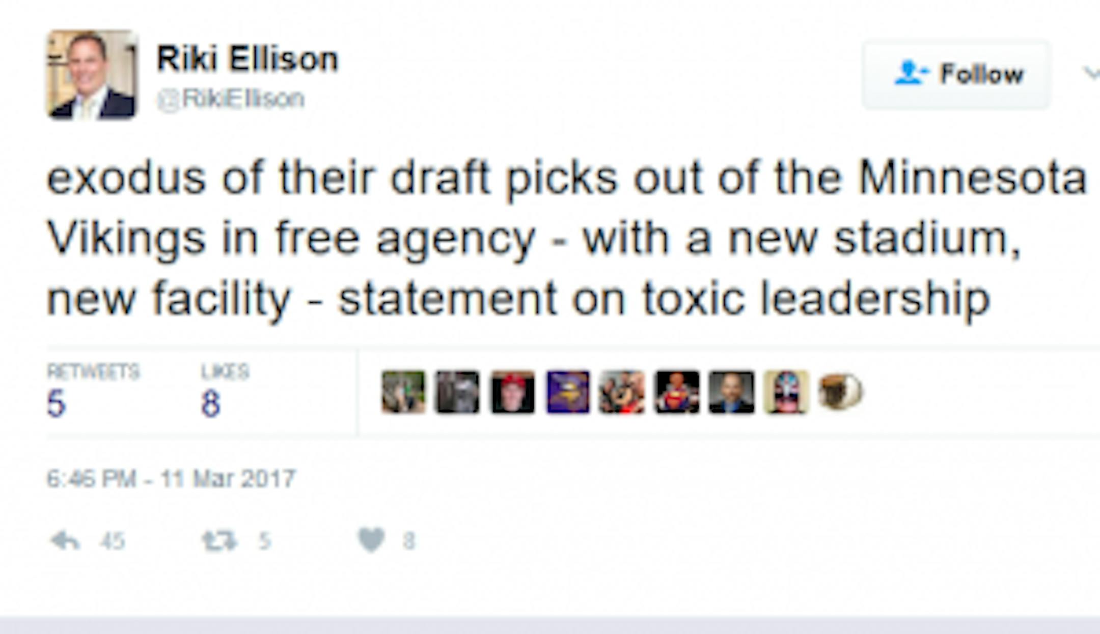 Riki Ellison, the father of former Vikings tight end Rhett Ellison and a former NFL player himself, had some interesting things to say about Minnesota after Rhett signed with the Giants.