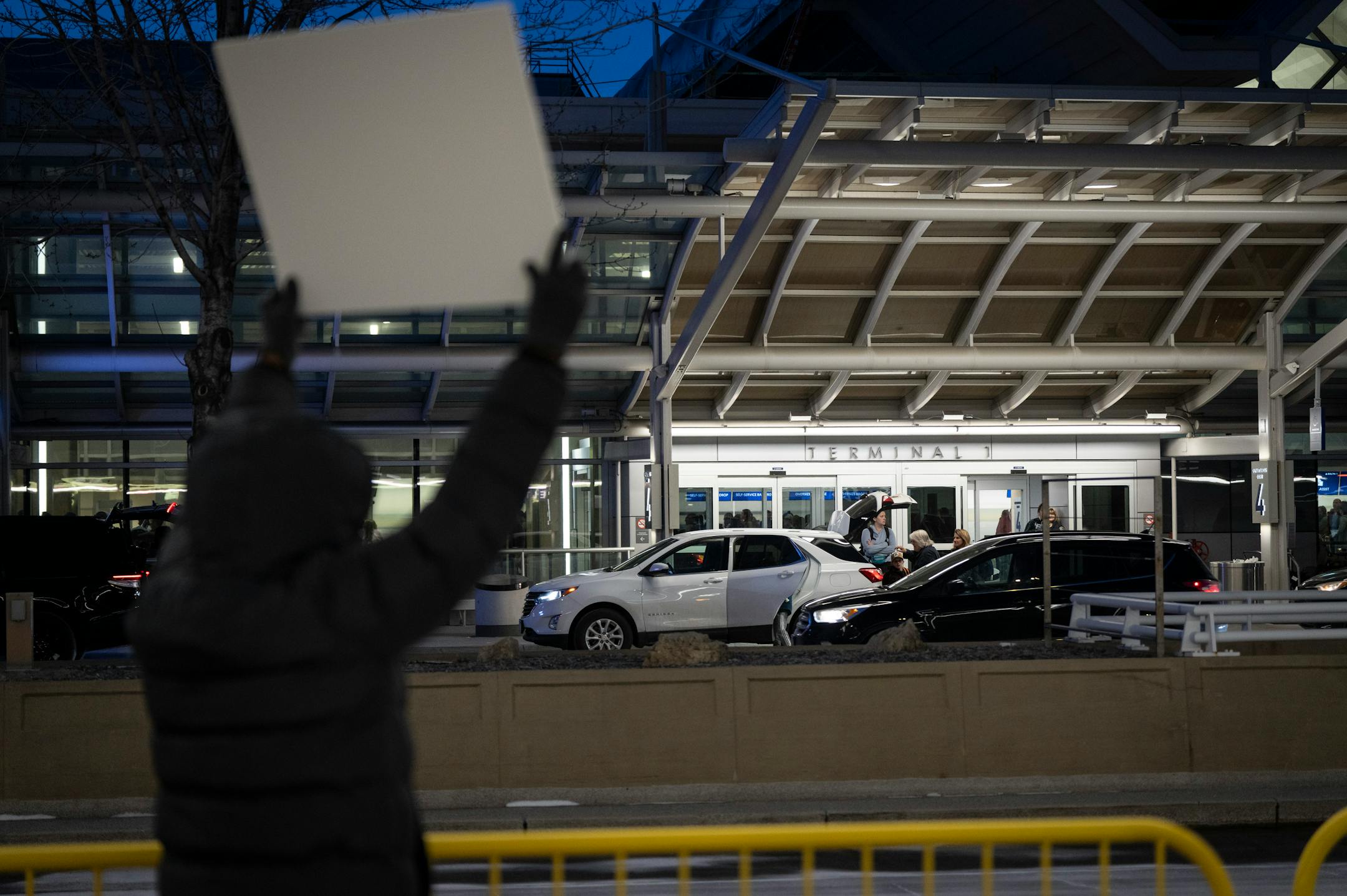 Starting about 5 p.m. Thursday, a group of about 30 drivers marched on a small sidewalk across a tall median from the main departure road at Terminal One. Other drivers zipped by after dropping off passengers, seeming to pay little attention to the small demonstration.