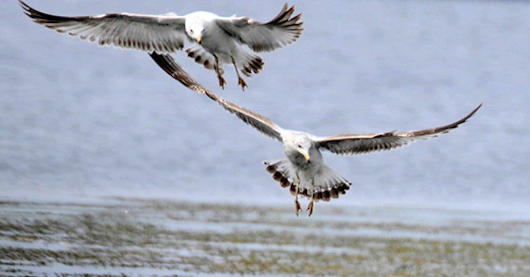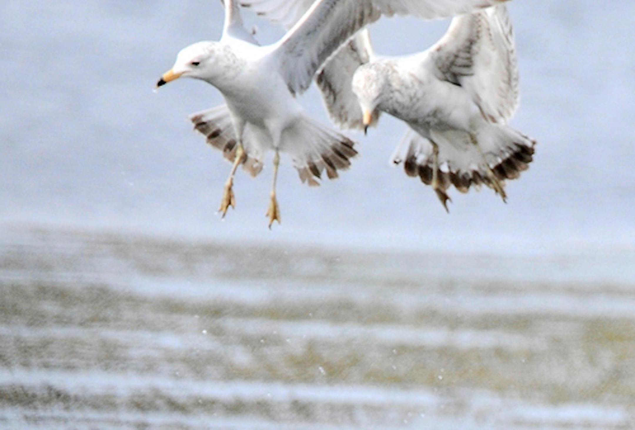 These are immature Ring-billed Gulls, the common gull in the metro area. These birds were loafing and fishing today (Monday) on Long Lake in western Hennepin County.