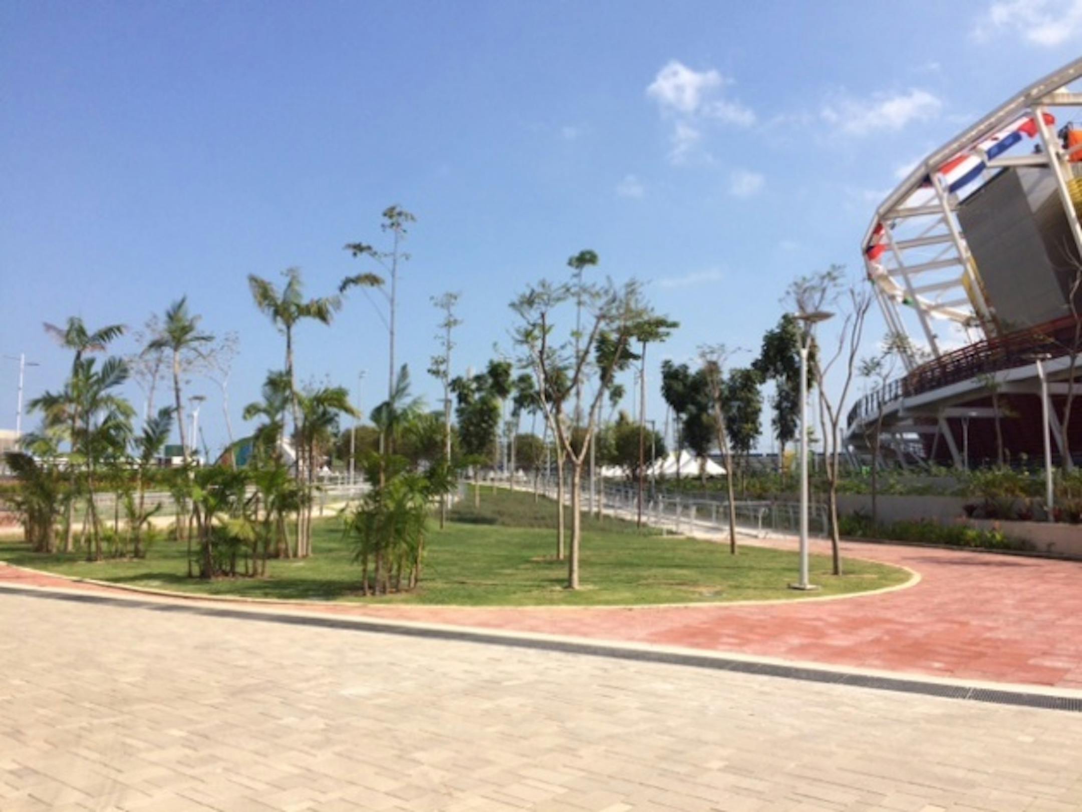 We're being vigilant, of course, but that doesn't always matter. Saturday, a stray bullet pierced the roof of the media tent at the equestrian venue. The communications director for Rio 2016 expressed little concern, saying the venue wasn't a target and calling it "an unfortunate incident.'' Sunday, he said the bullet—which landed near the press conference room—was fired from a slum, by someone targeting a police blimp.
