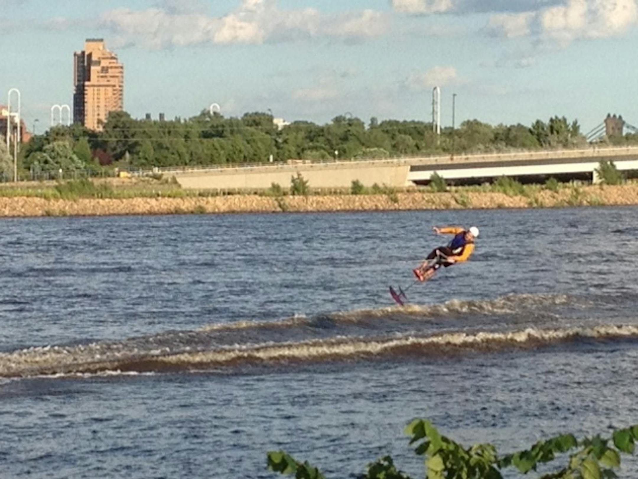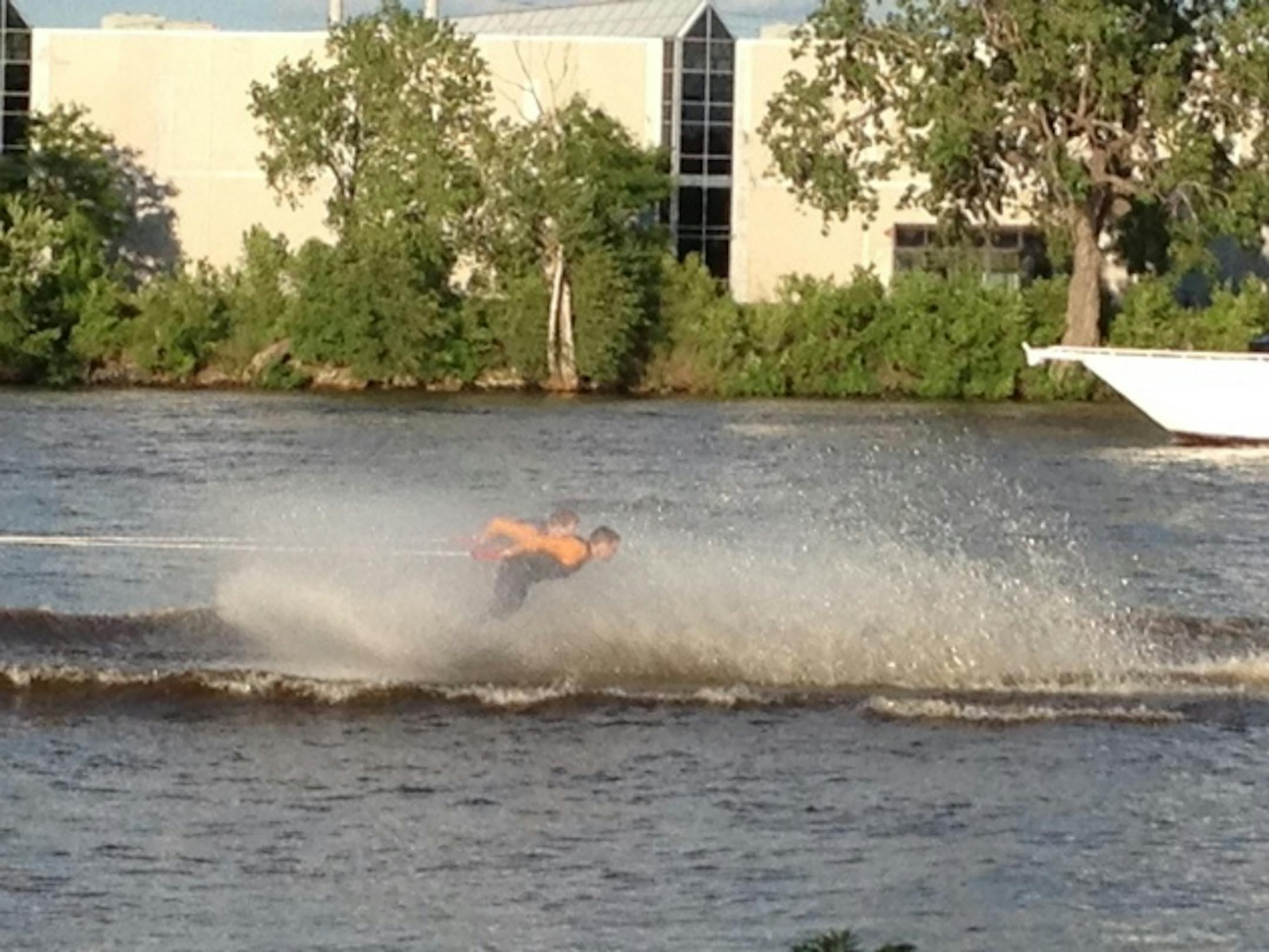 For the most part, skiers stayed about the water's surface Thursday, but whenever one fell, a rescue boat raced to intercept the skier before he or she was swept too far downstream. A constant parade of debris posed other issues.