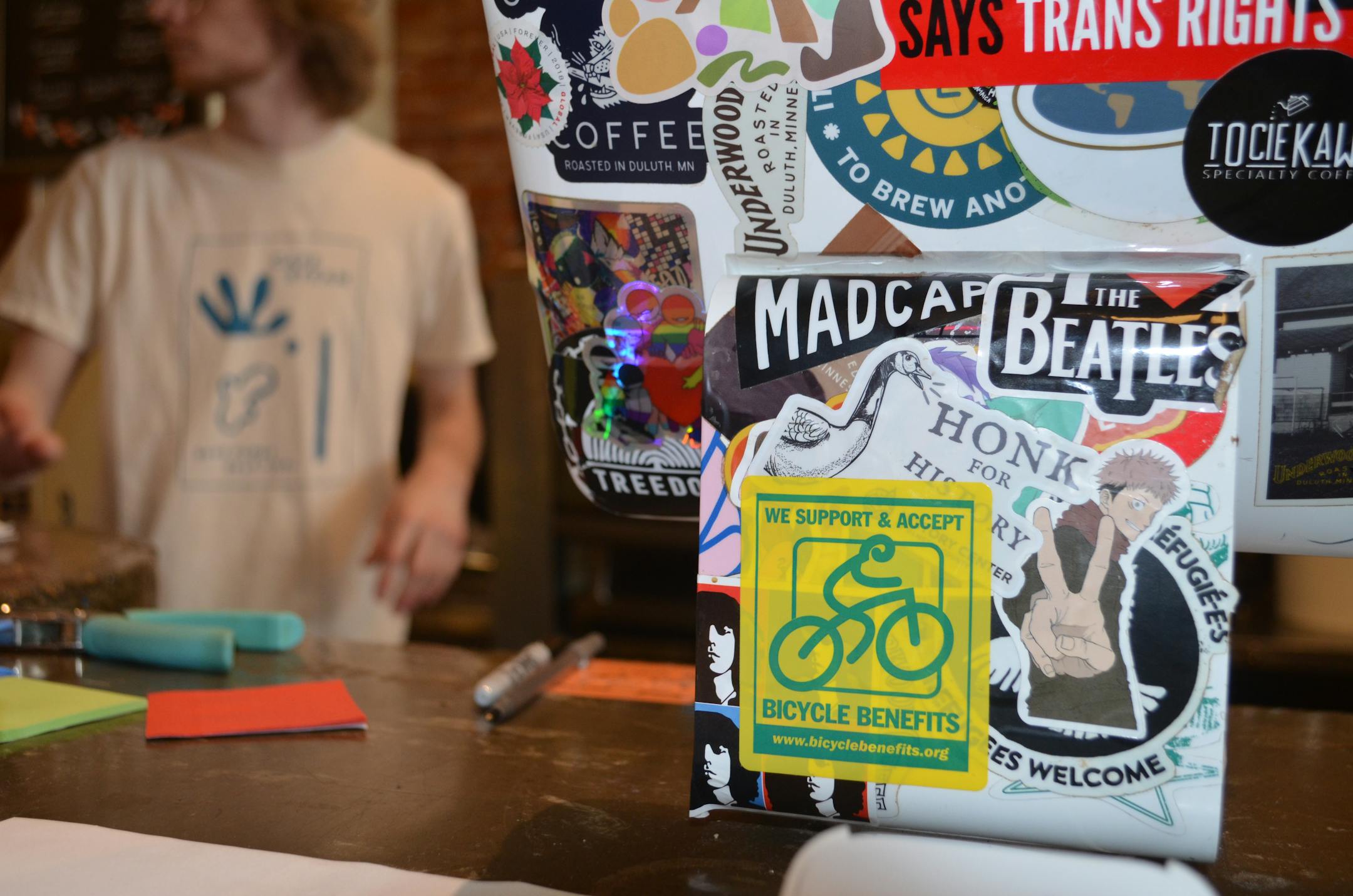 Those businesses offer stickers under the program that allow bikers several discounts, from 10% off purchases at Café Steam and Garden Party Books to a free coffee at Forager Brewery per visit, 50 cents off a drink at the Fiddlehead Coffee Co. or $1 off a pint at Kinney Creek Brewery.
