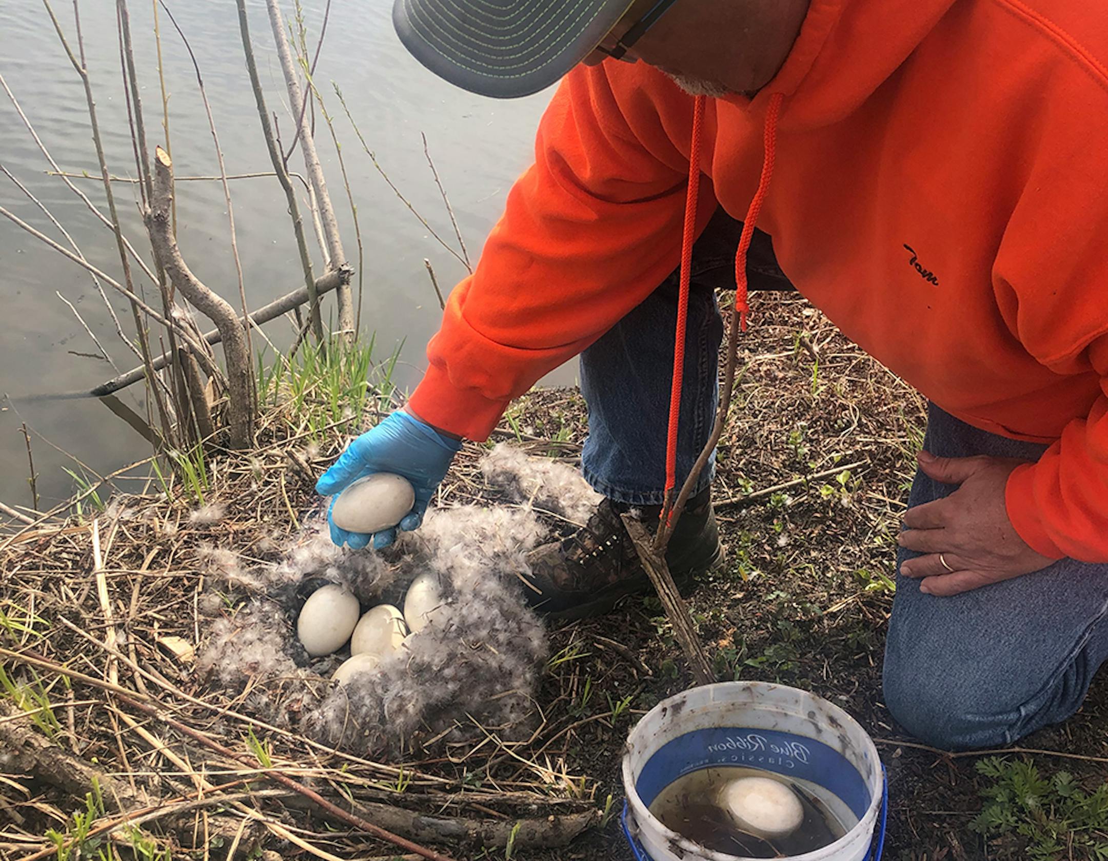 Eggs that rise or float in a bucket of water indicate a developing embryo and are returned to the nest to be hatched, he said. Treated eggs also are returned to the nest because if they weren't, the geese would lay more.