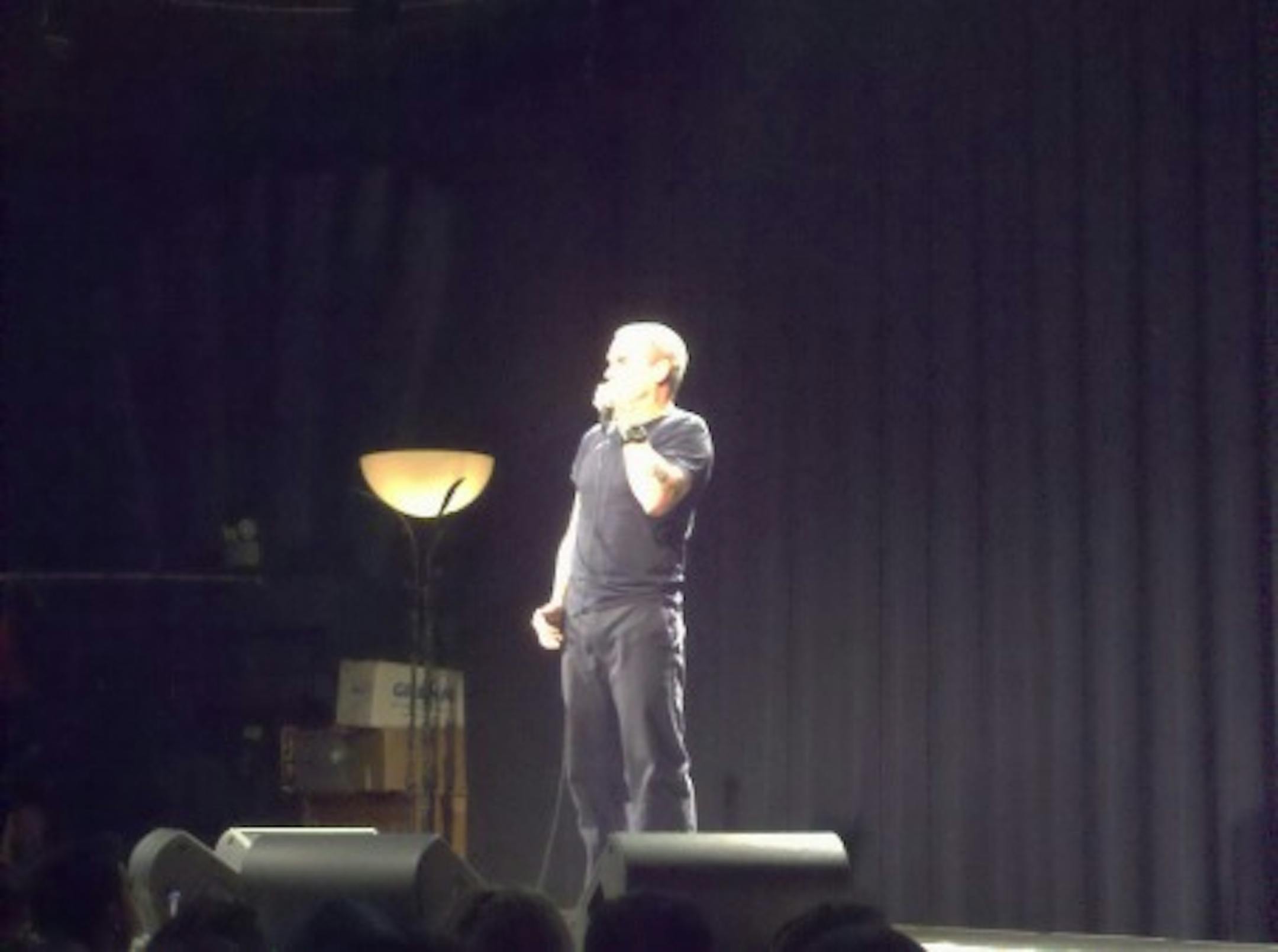 Out on another spoken-word trek that he dubbed the "50 Tour" -- so named because of his birthday last month -- the now-gray-haired but still-bad-ass-looking punk vet said he was playing smaller venues this time so fans could "get close enough to poke me with a stick: 'Oh, look, he's still alive!.' " Rollins avoided talking domestic politics, aside from a riff on Bachmann and a hilarious recollection of the day he read George W. Bush's book "Decision Points" aloud in a Costco. Instead, he stuck to a lot of international talk, starting with Egypt and the Middle East and then going on to Iran, North Korea, Vietnam, Tibet and Sudan -- places he has actually visited. The segment on North Korea was surprisingly funny, as he poked fun at their arcane laws and insane regime while talking lovingly about the people. His account of war-torn Sudan, on the other hand, was expecially moving. He went there on a recent charity mission with www.DropintheBucket.org and claims he went away a changed man. "Don't ever think you're anything else but a great vehicle of change," he preached to the crowd at the end of his two-hour-plus set.