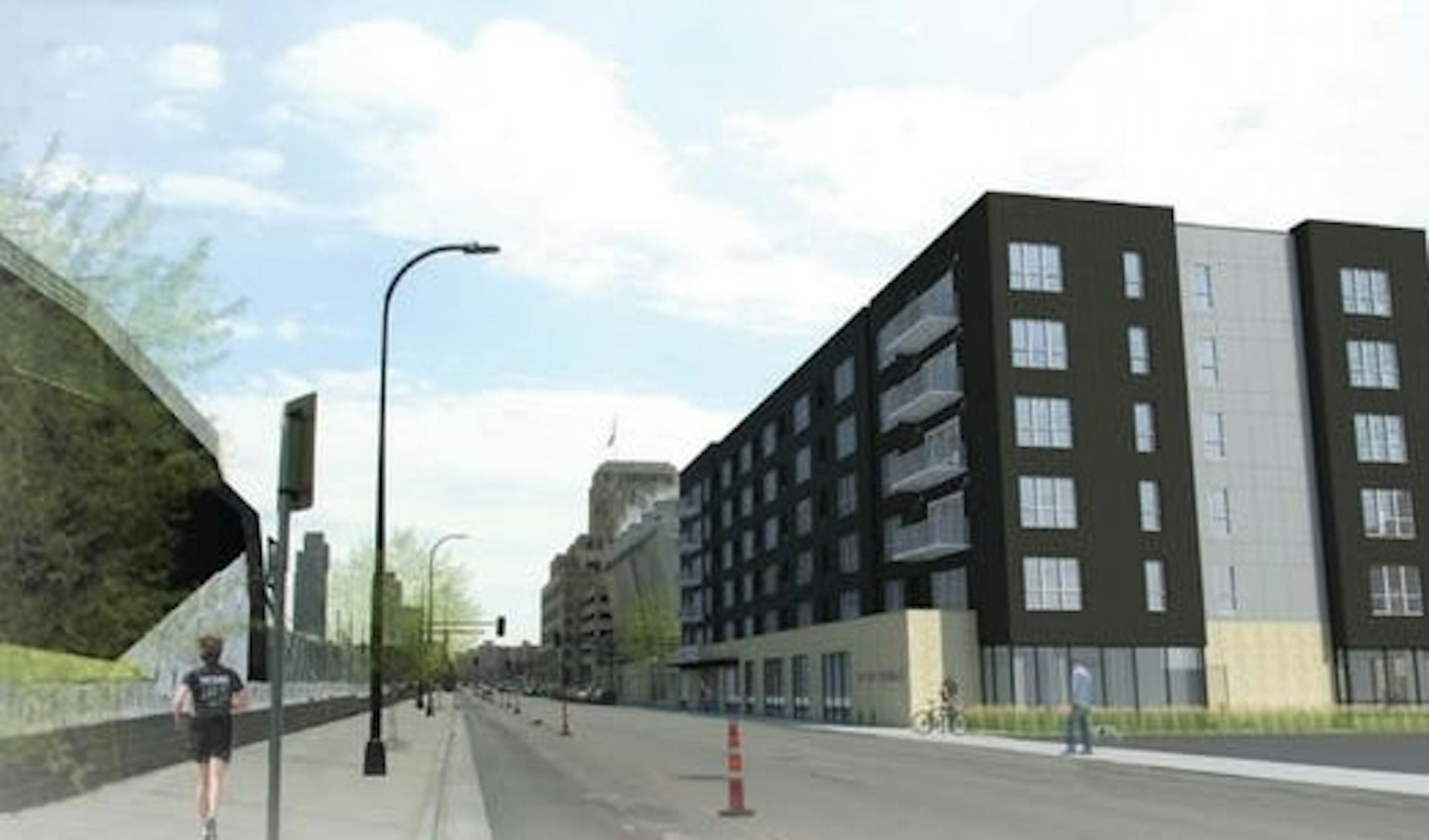 An earlier rendering of East Town Apartments project, courtesy UrbanWorks Architecture