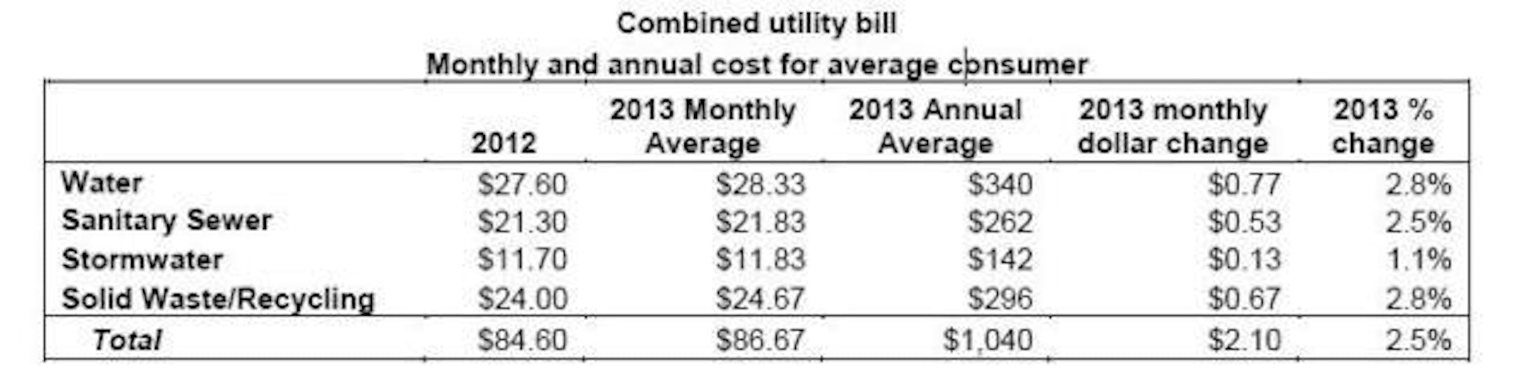 Rybak's budget, posted online yesterday, increases utility fees by $2.07 a month or $25 a year, bringing the average annual cost per home to $1,040.