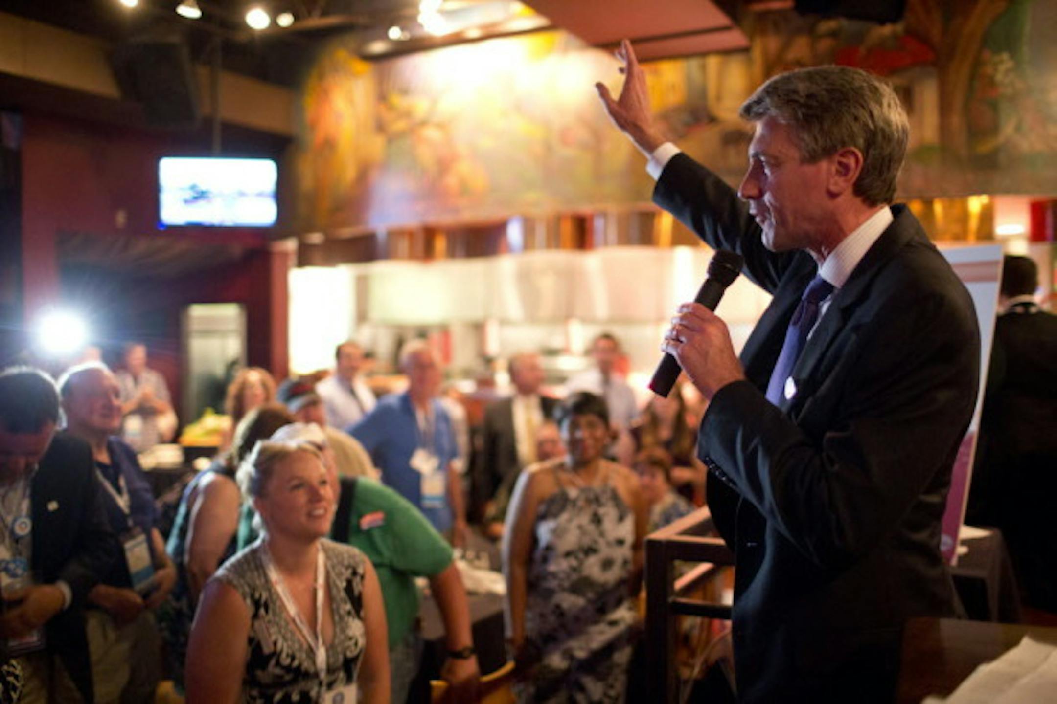Photo: Rybak addressing the South Dakota and Minnesota delegations in Charlotte Monday night (Credit: Jeff Wheeler)
