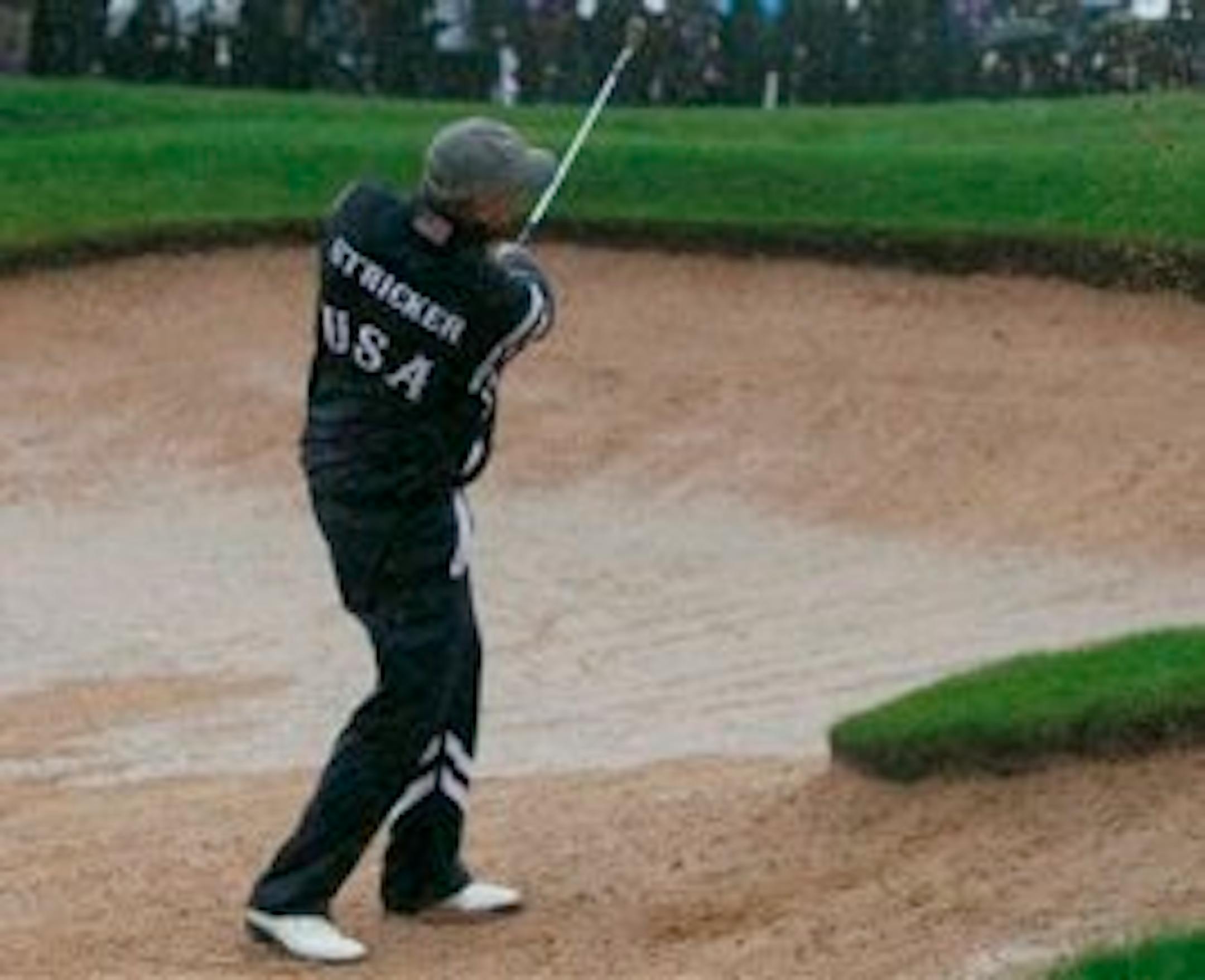 Sun Mountain supplied the American team with the rain gear — navy blue, with stripes around the arms and left leg, with last names stitched on the back above "USA." They looked like they belonged to a college basketball team.
