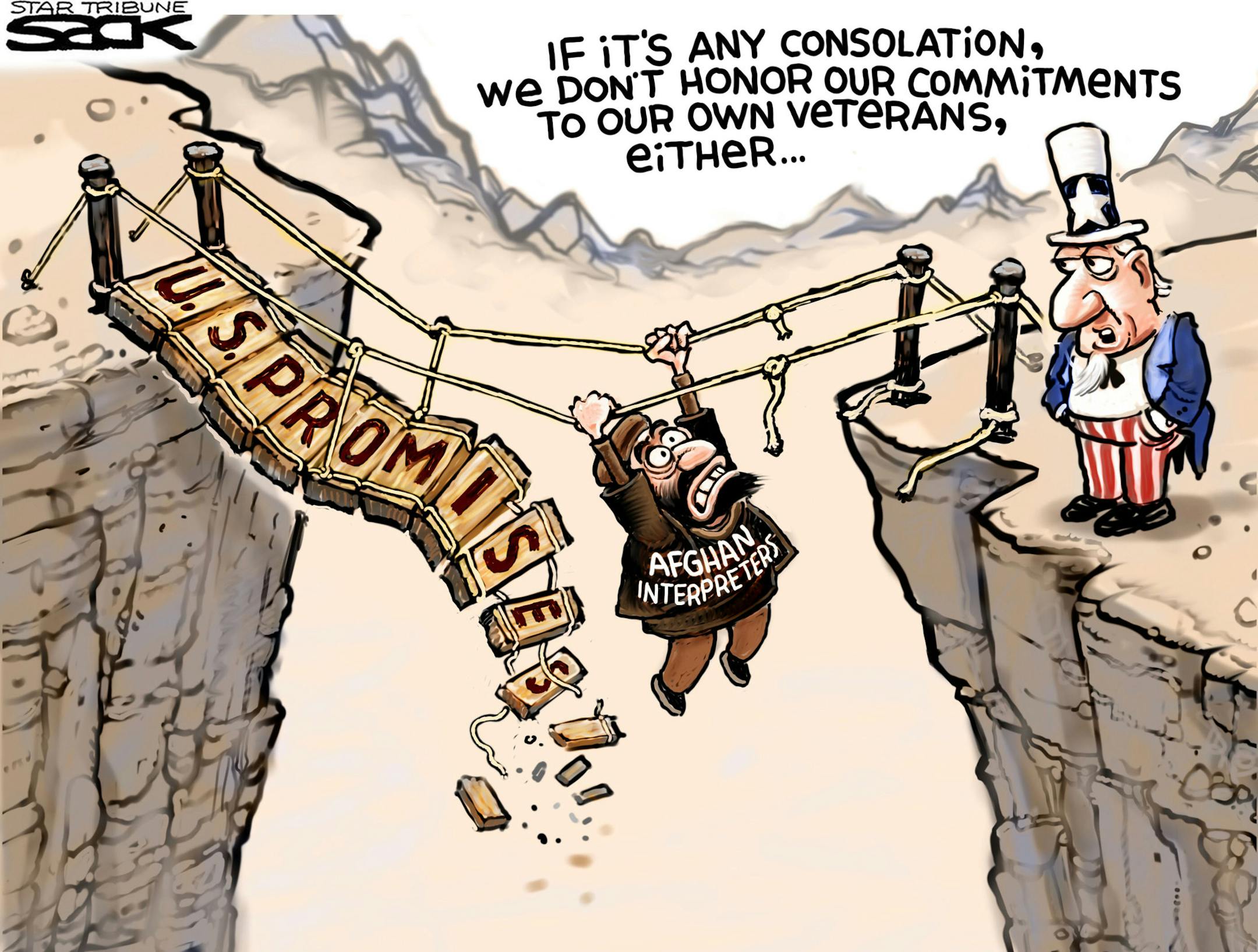Sack cartoon: Afghan translators