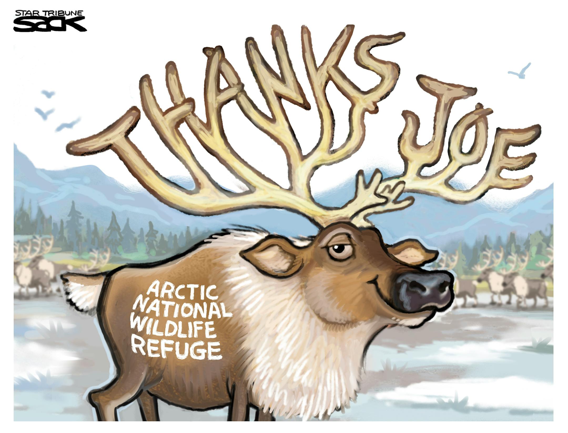 Sack cartoon: Arctic National Wildlife Refuge says "thanks"