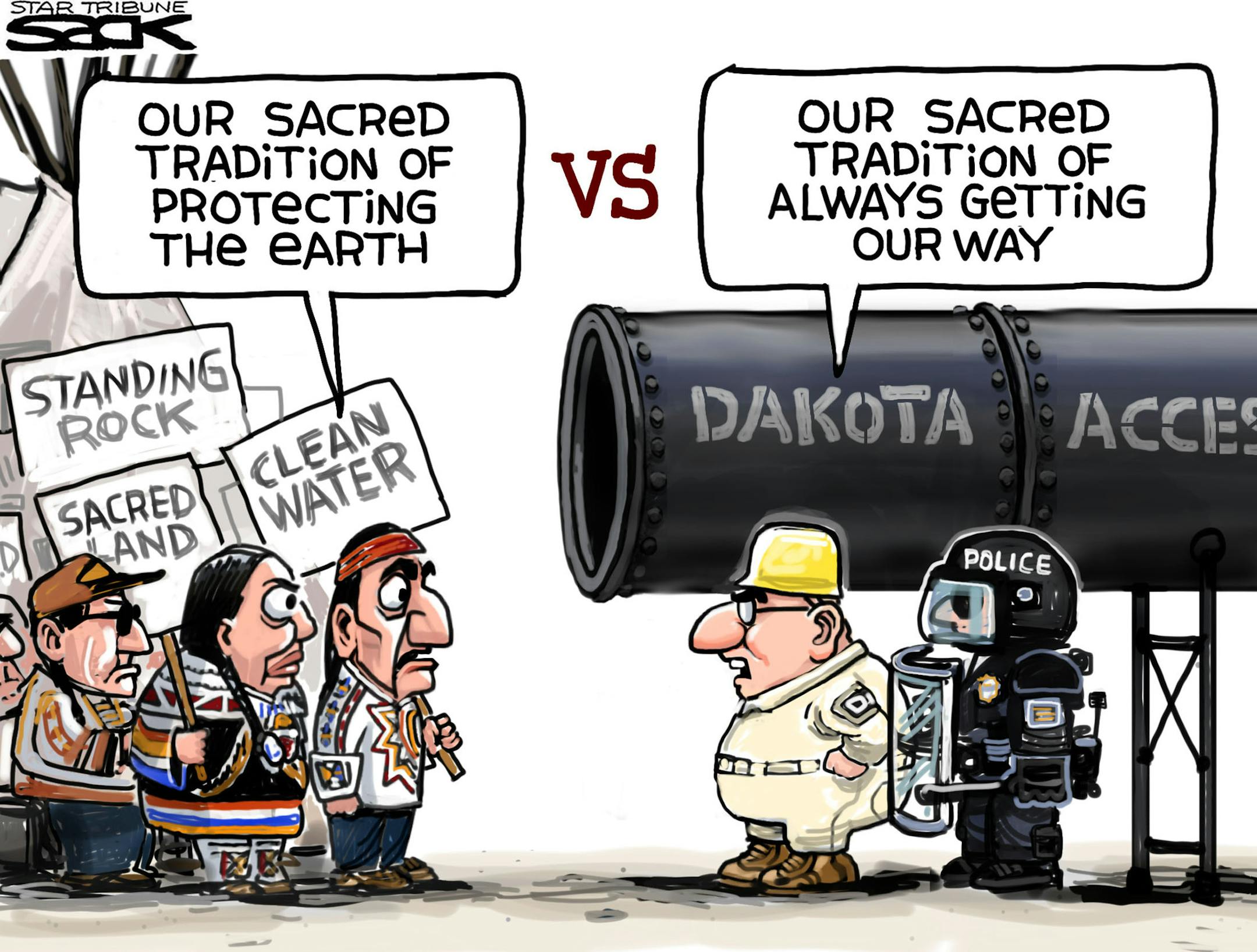 Sack cartoon: Dakota Access pipeline and Standing Rock