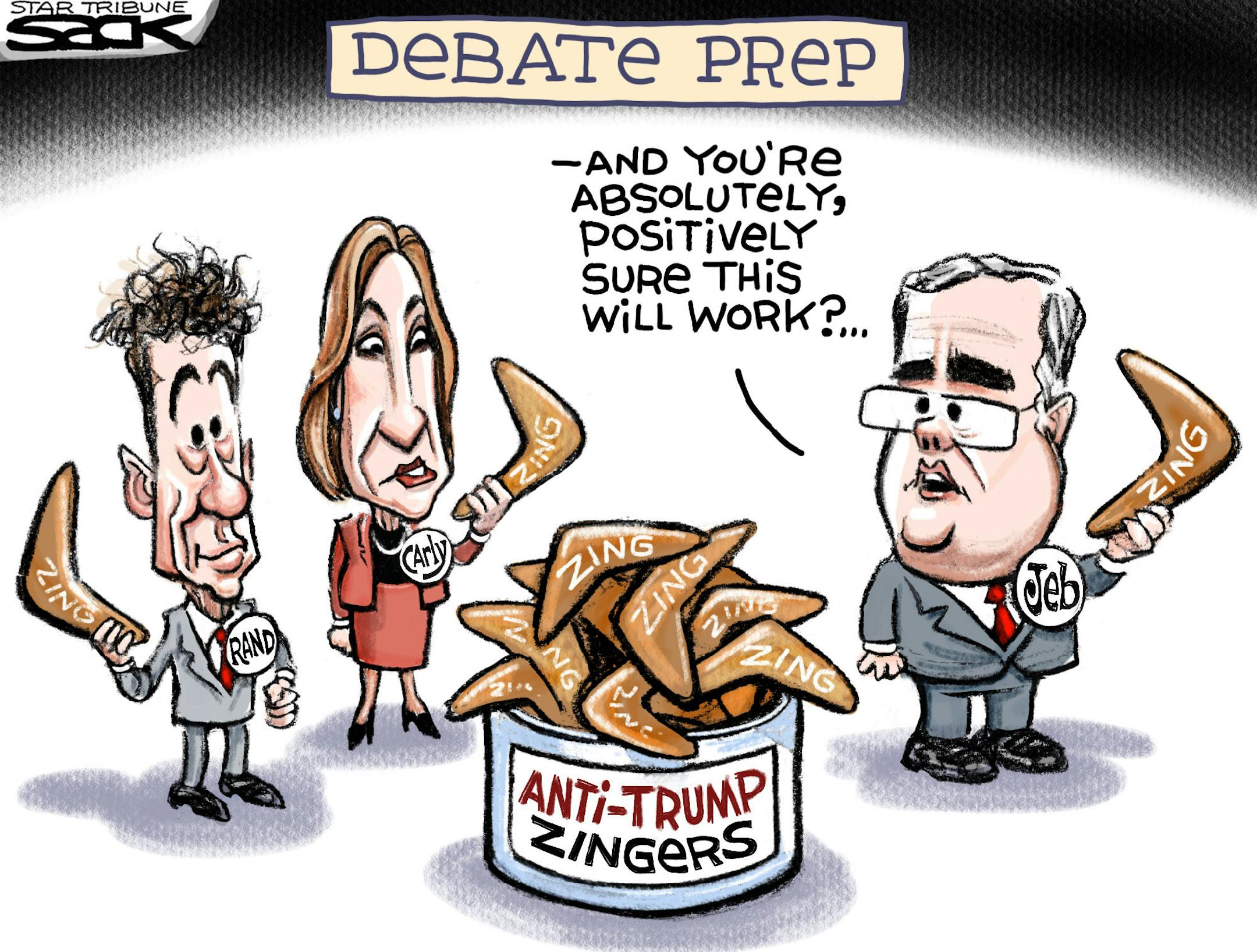 Sack cartoon: Debate strategy