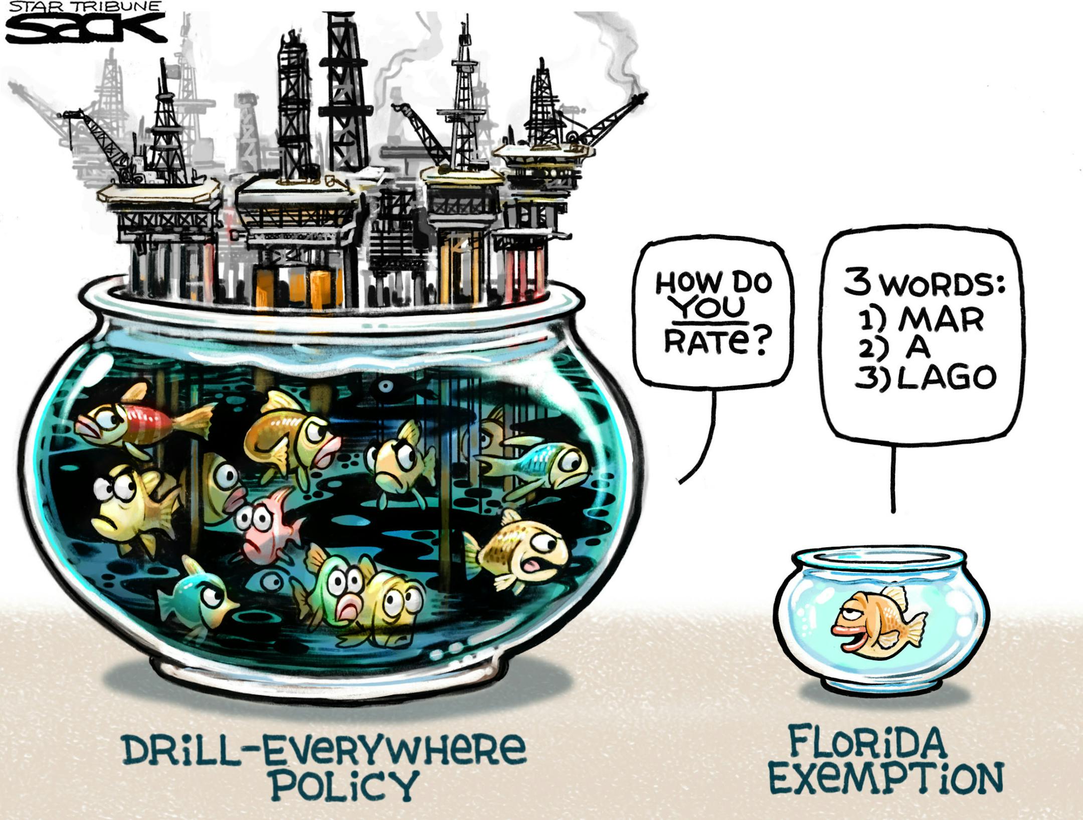 Sack cartoon: Drill, baby, drill — but not there