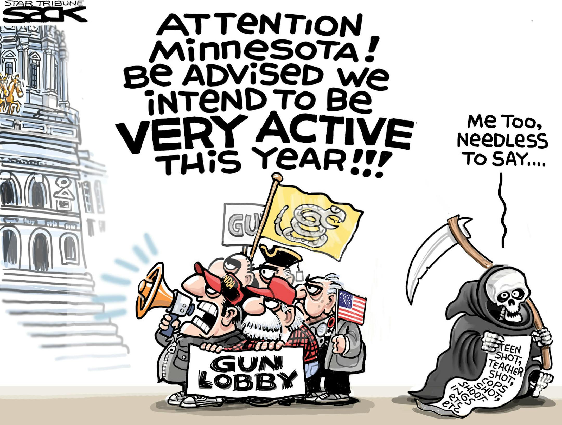 Sack cartoon: Gun lobby