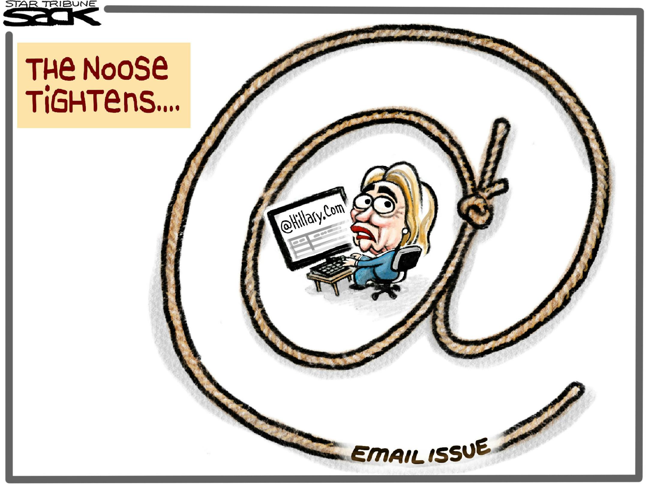 Sack cartoon: Hillary Clinton. E-mail.