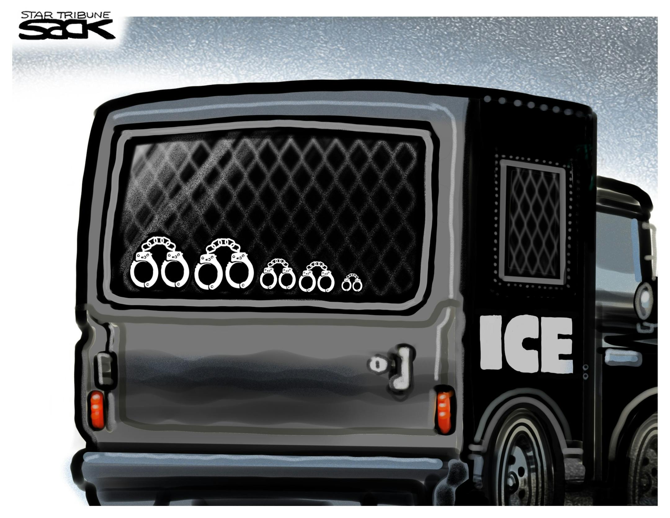 Sack cartoon: Immigration and Customs Enforcement raids