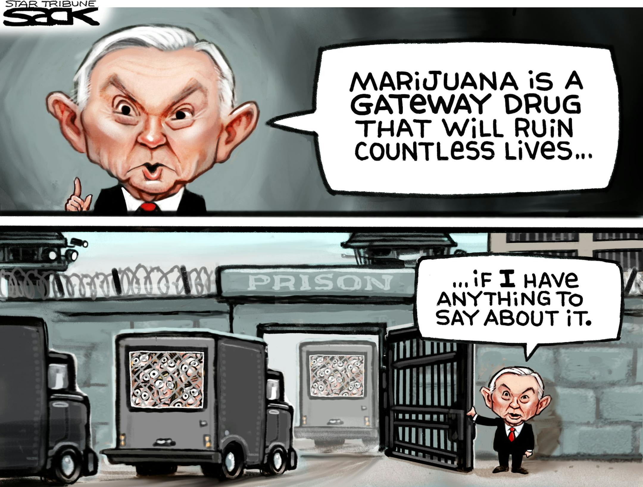 Sack cartoon: Jeff Sessions' approach to drugs