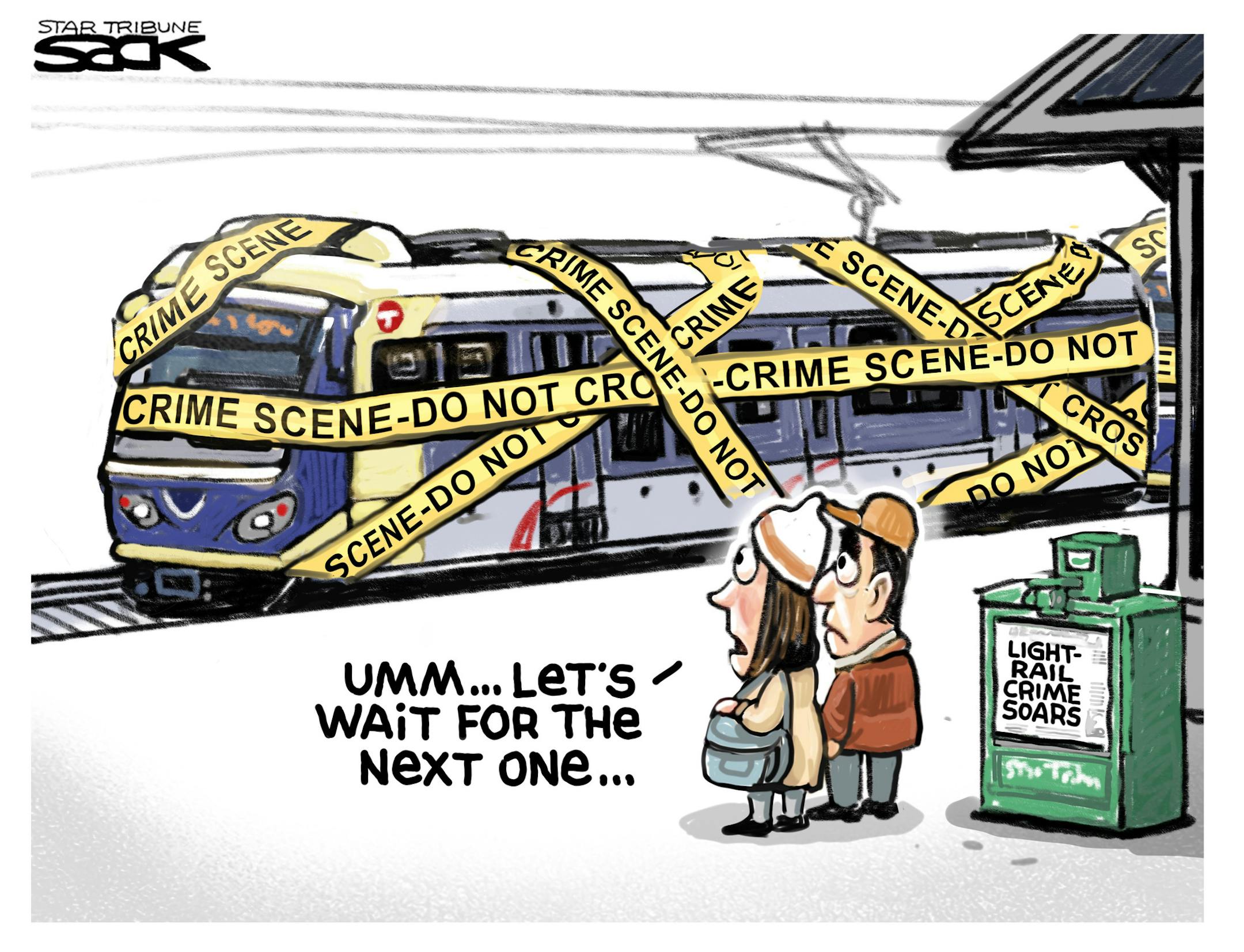 Sack cartoon: Light rail crime on the rise