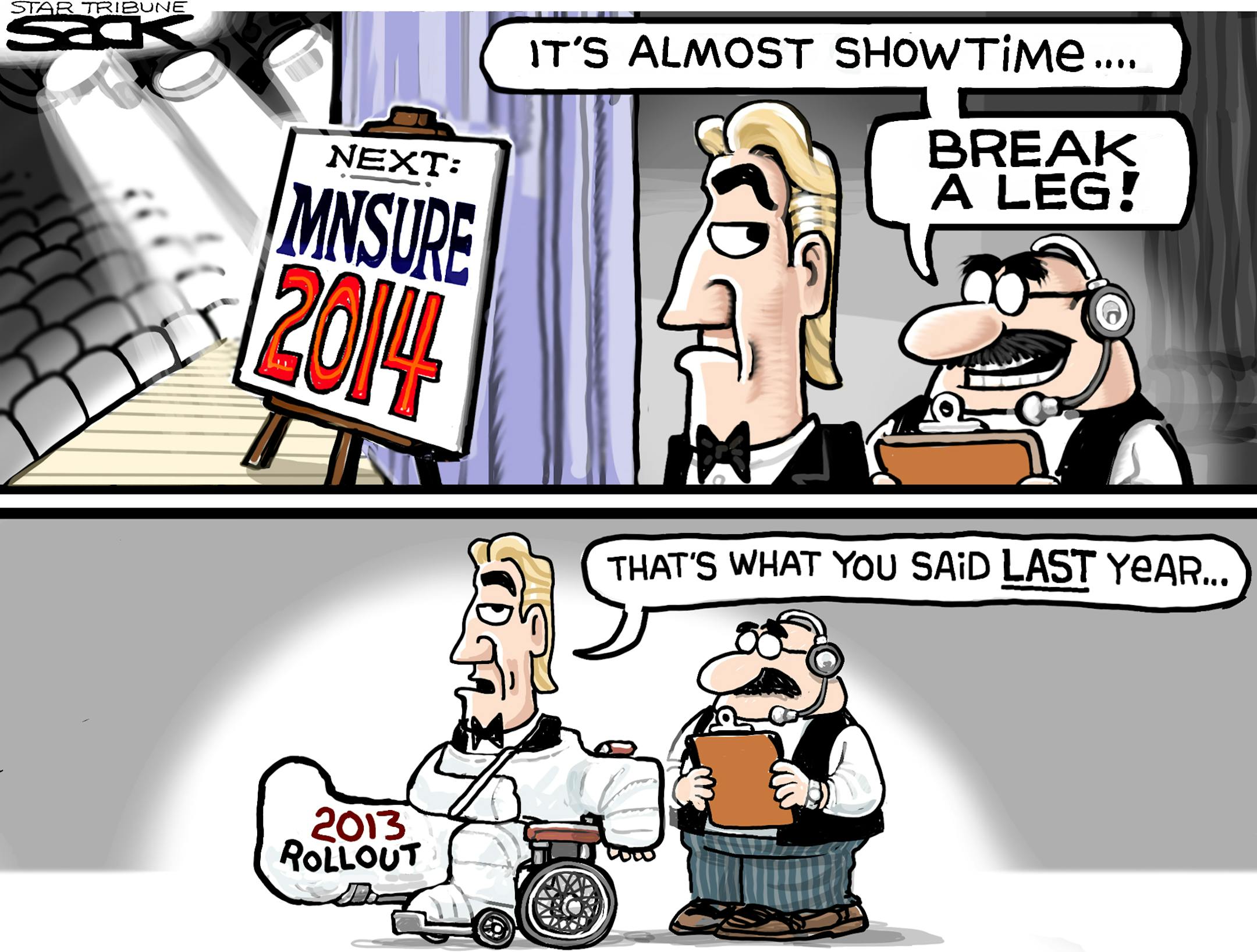 Sack cartoon: MNsure back on stage