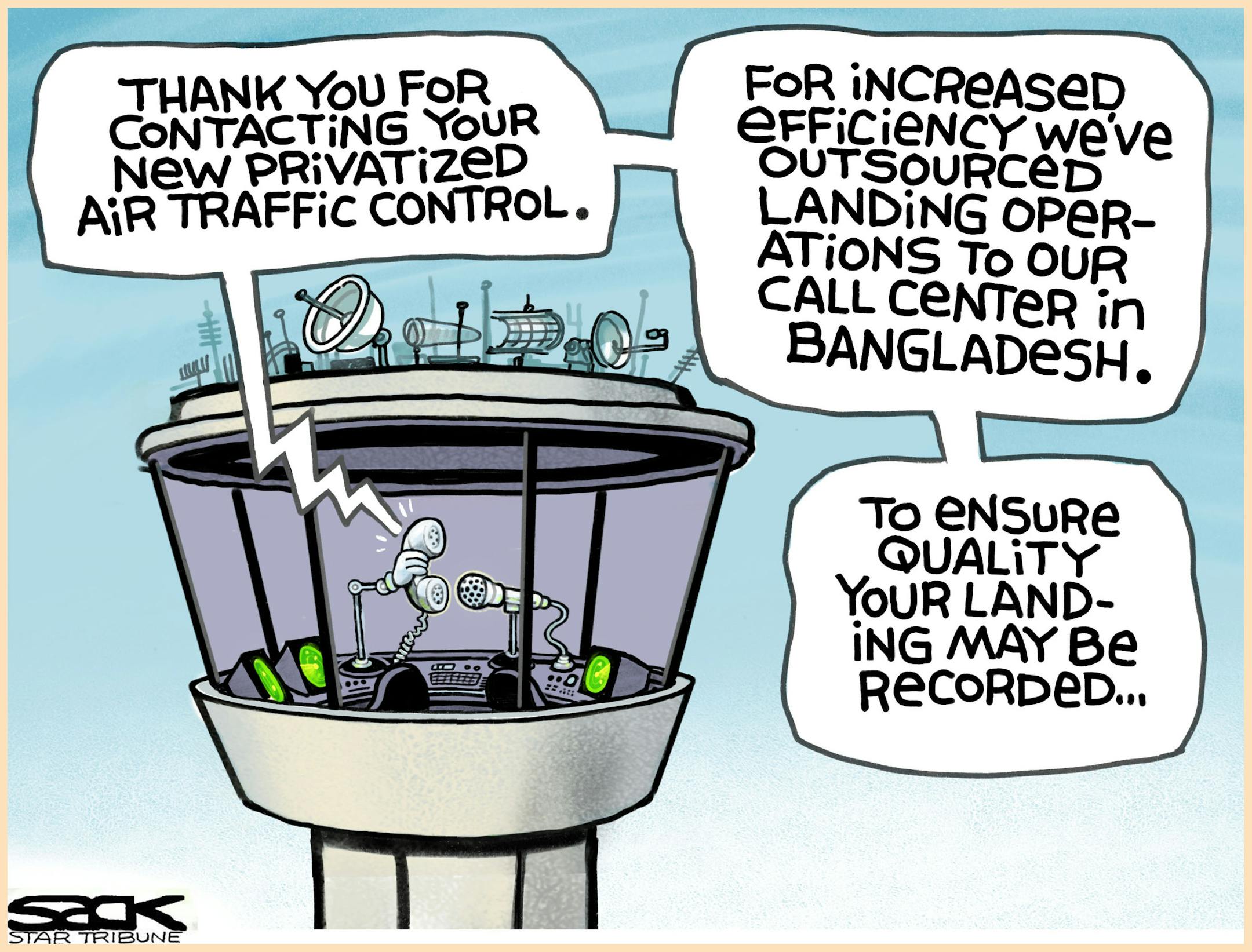Sack cartoon: Privatizing air traffic control