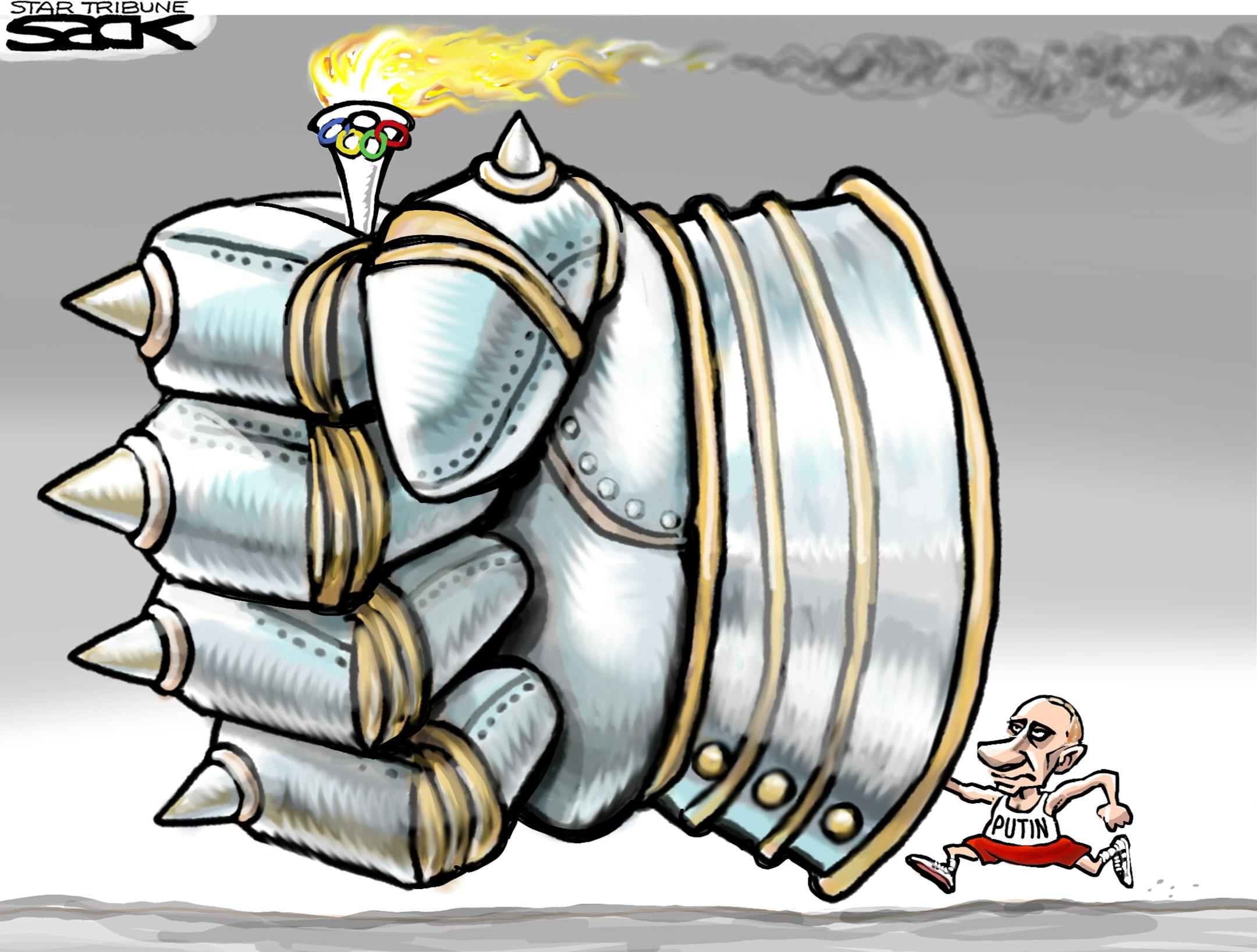 Sack cartoon: Putin carries the torch