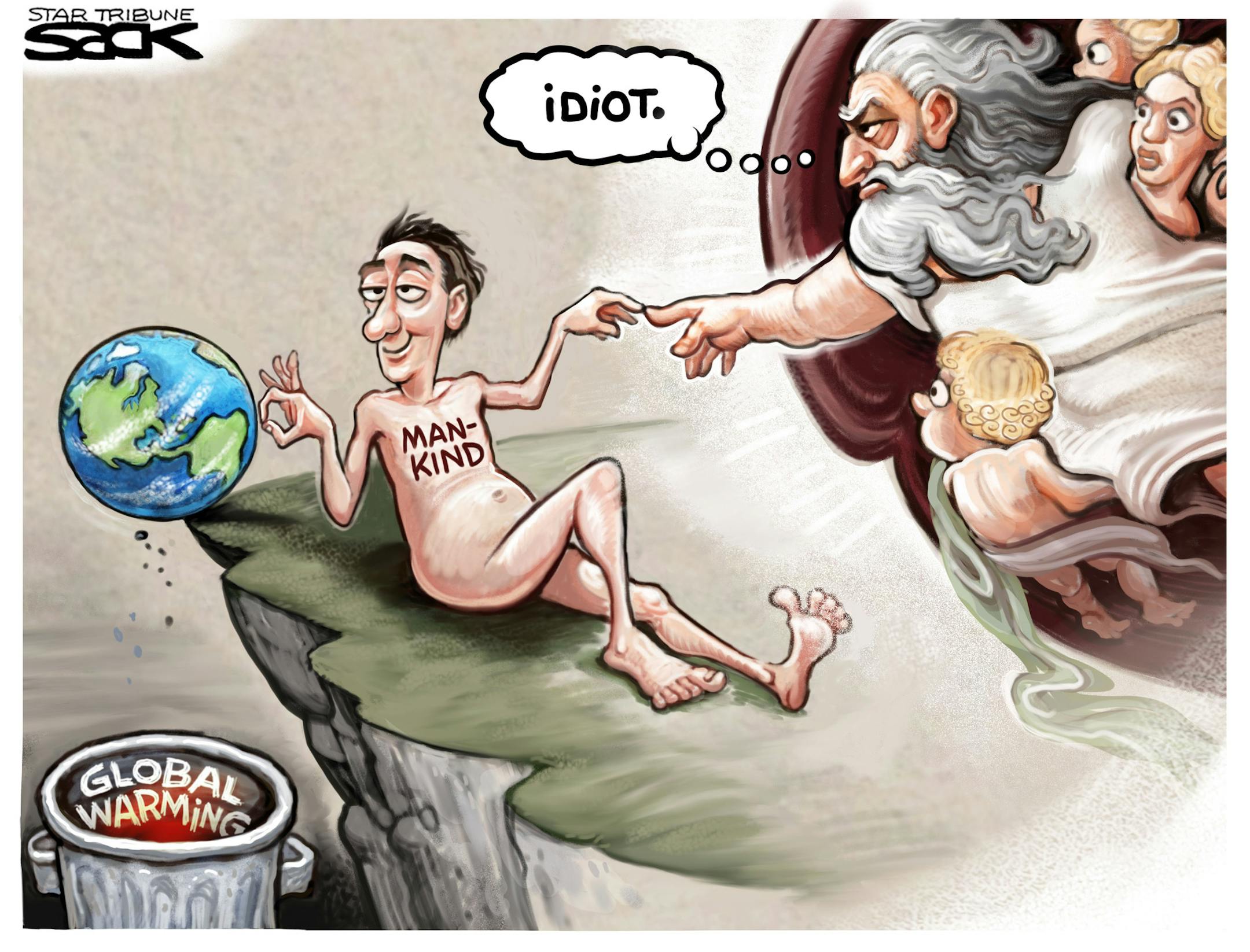 Sack cartoon: Regard for the planet
