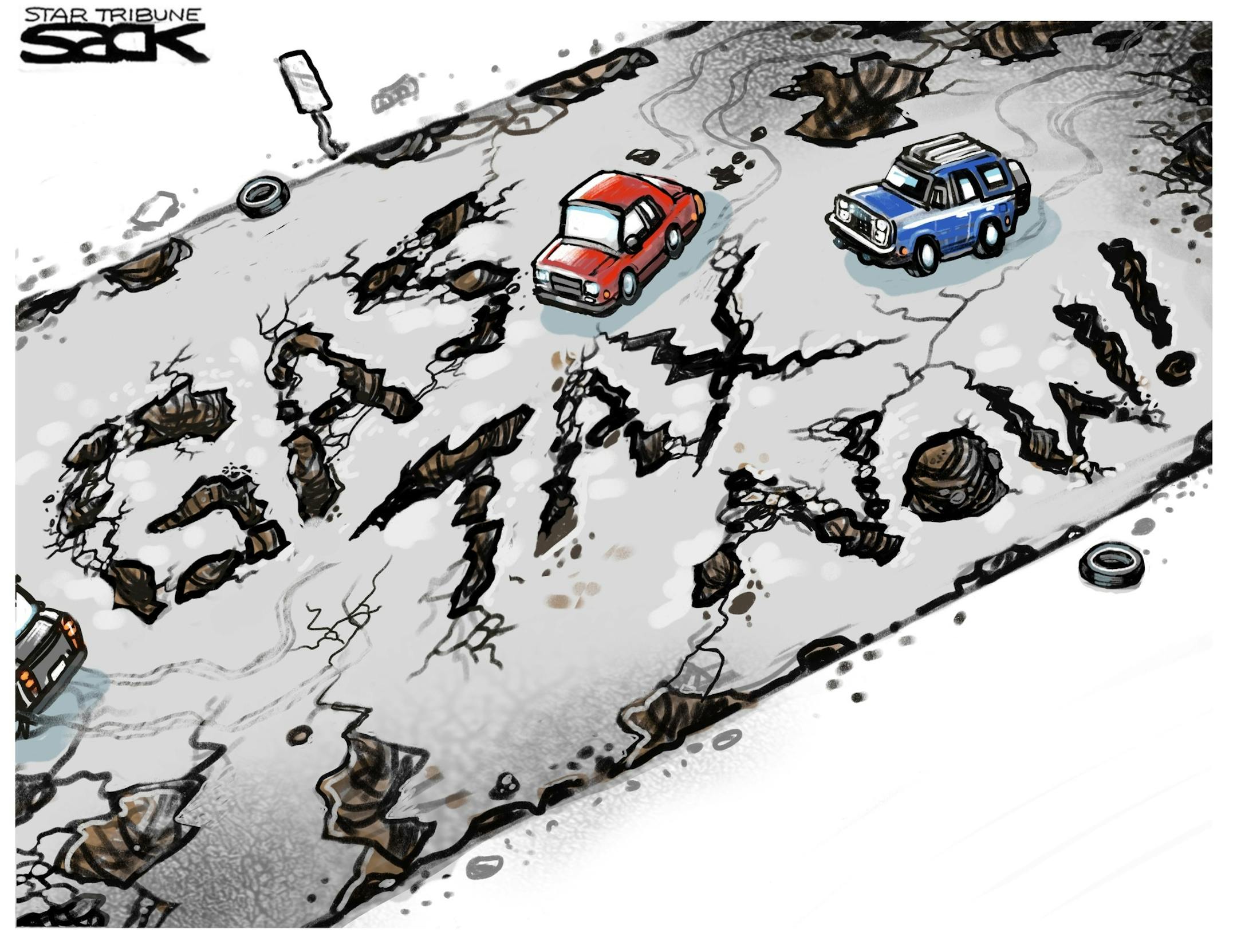 Sack cartoon: Road upkeep