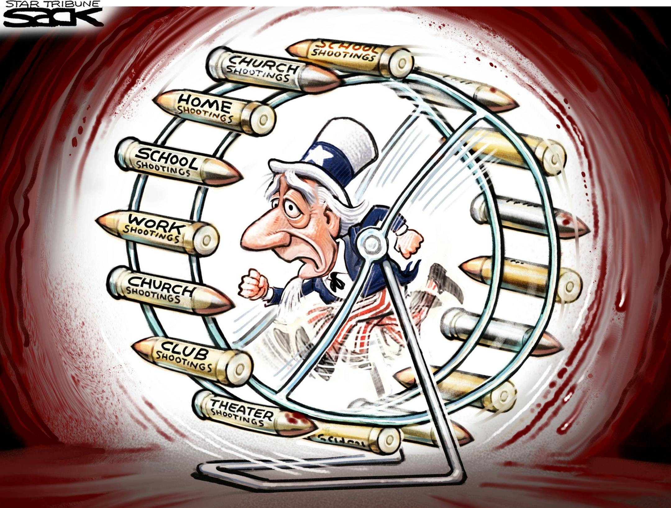 Sack cartoon: Shootings