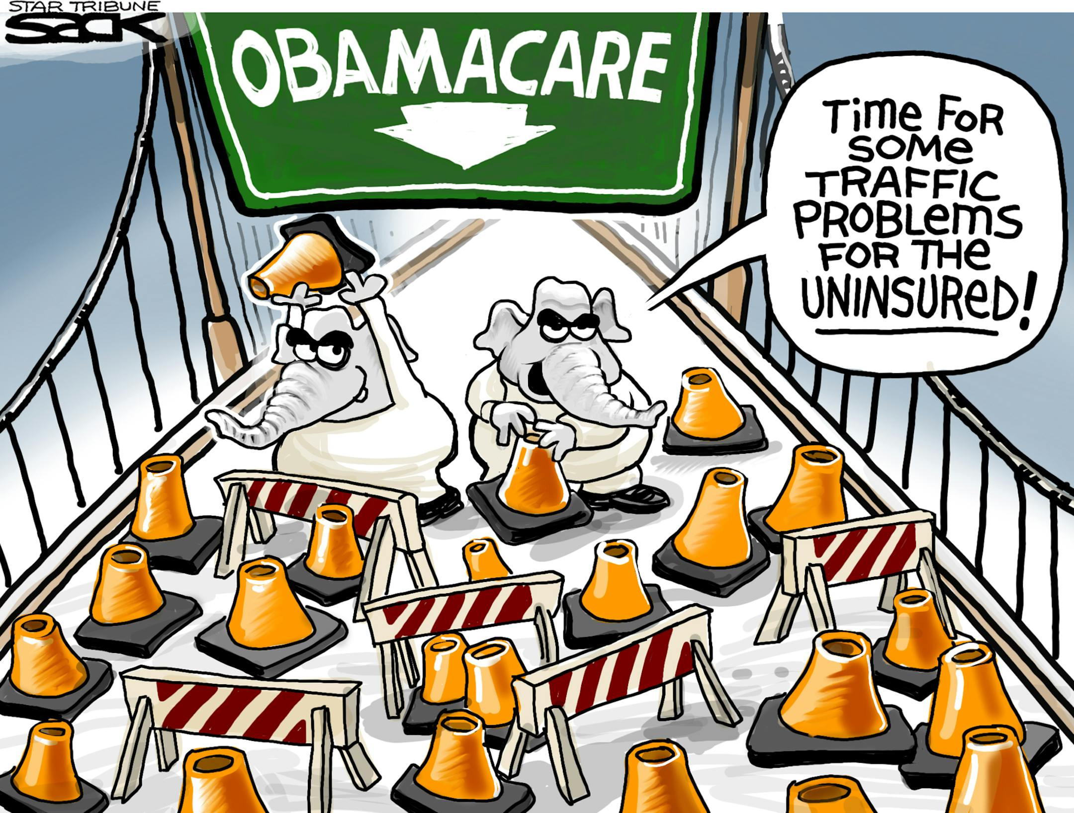 Sack cartoon: The bridge to Obamacare