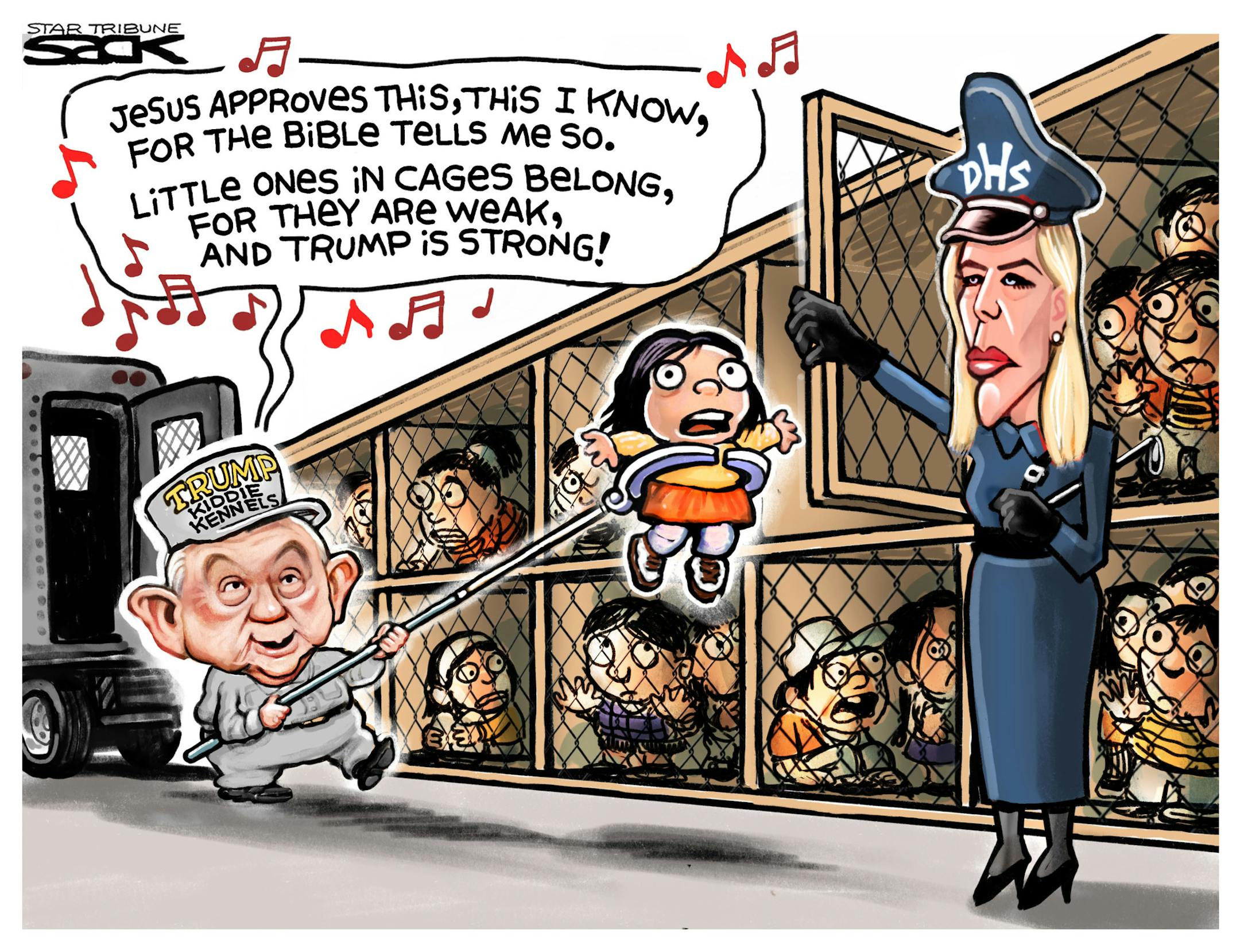 Sack cartoon: The family-separation policy, in song