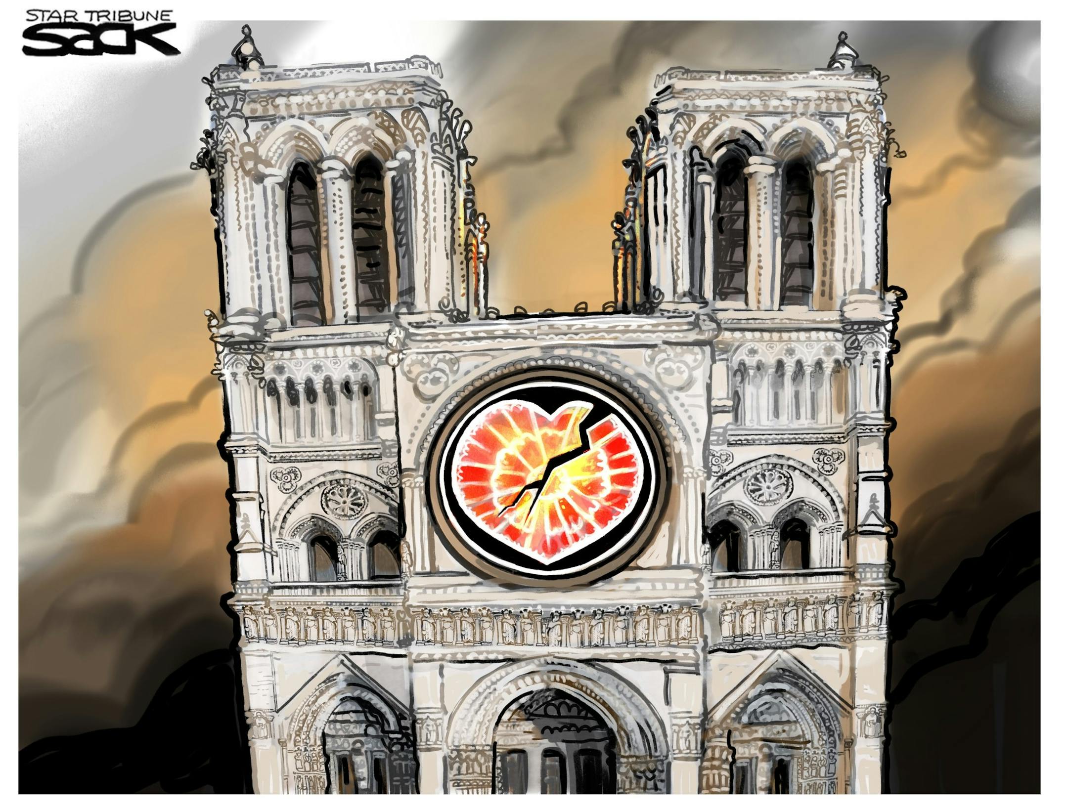 Sack cartoon: The fire at the Notre Dame Cathedral