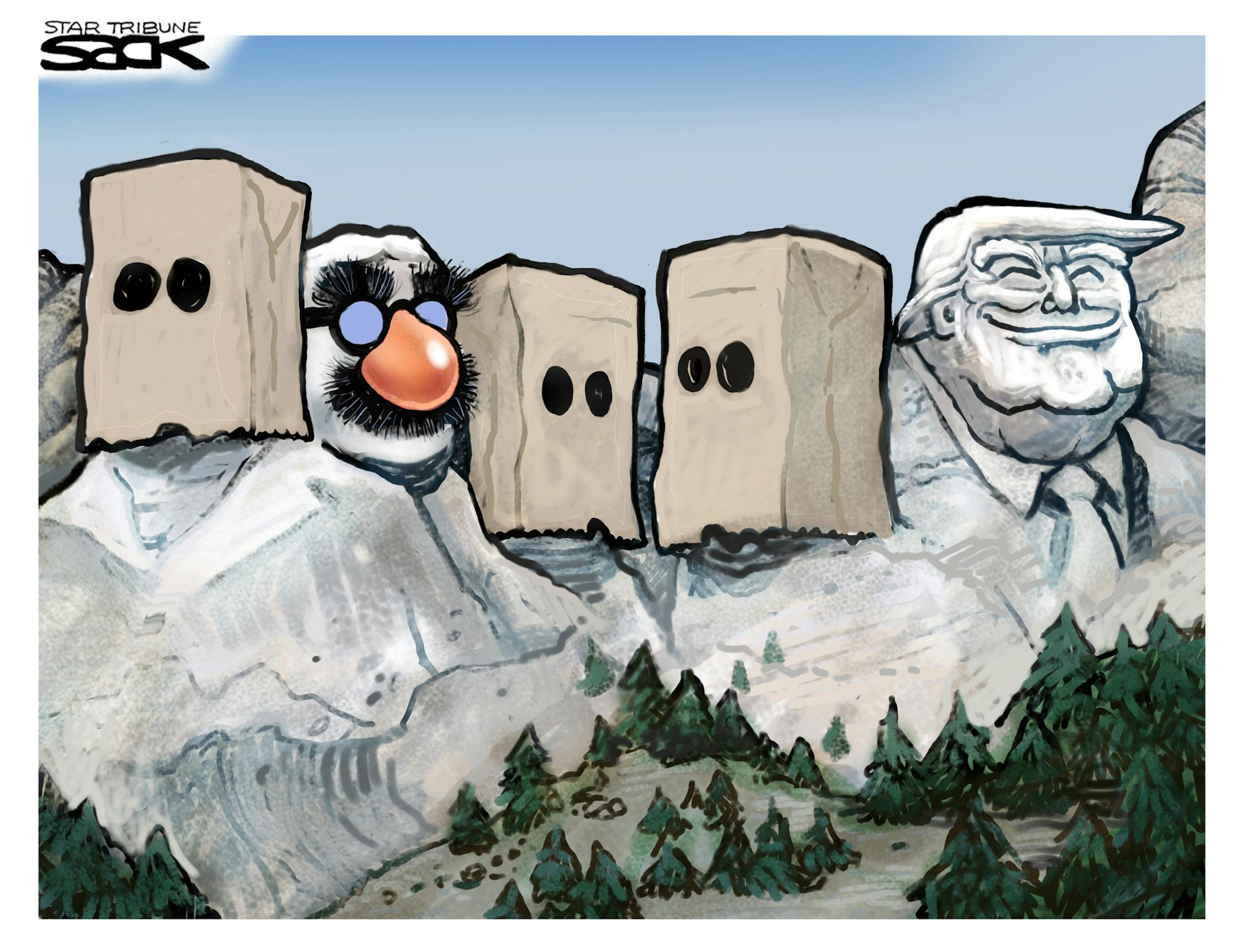 Sack cartoon: Trump. Rushmore.