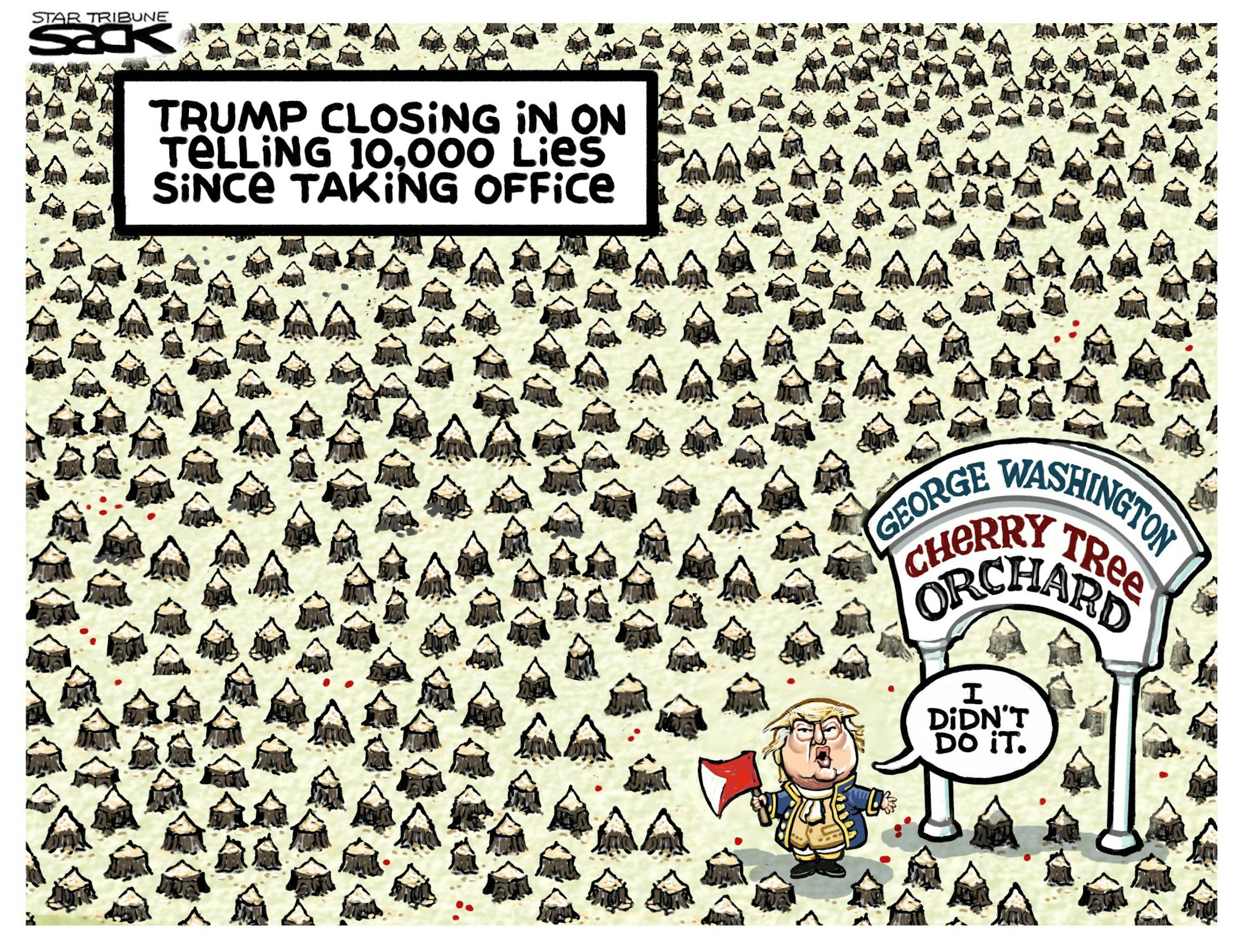Sack cartoon: Trump's land of 10,000 lies