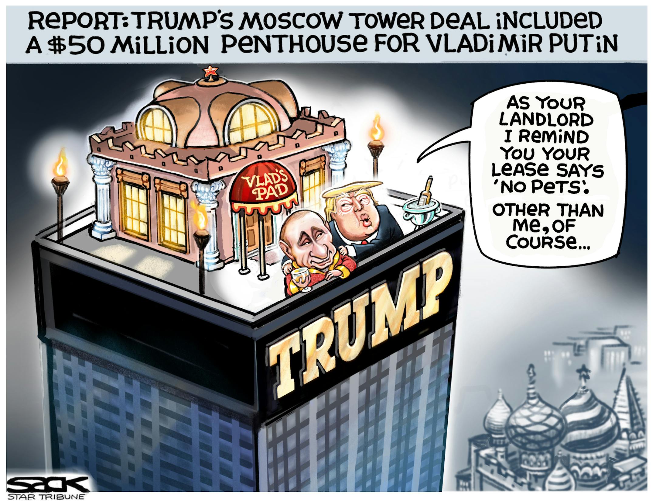 Sack cartoon: Trump Tower penthouse