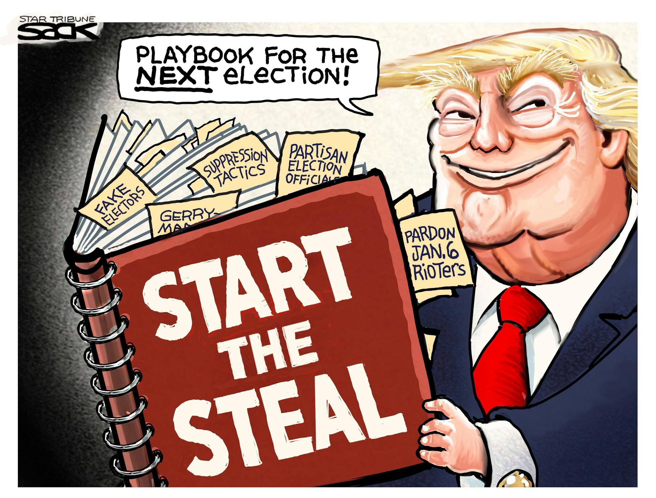 Sack cartoon: Trump's playbook