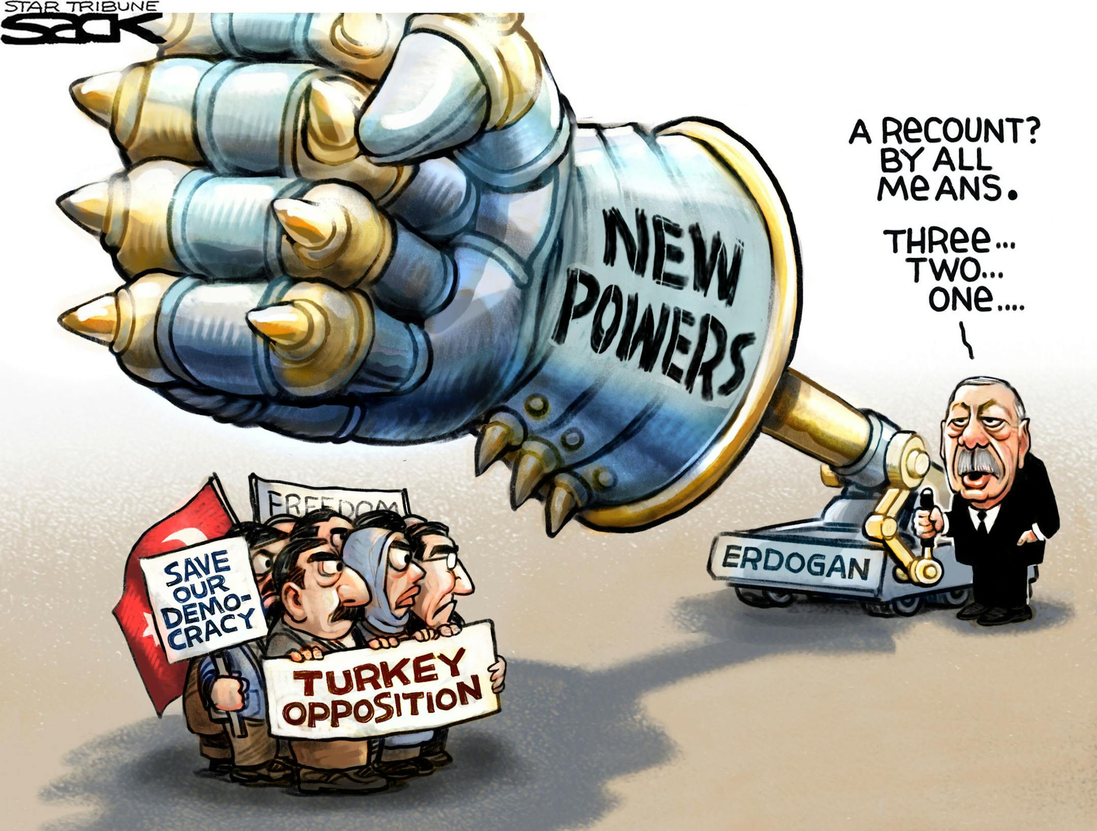 Steve Sack has been editorial cartoonist for the Minneapolis Star Tribune since 1981. He has won virtually every award in his field, including the Pulitzer Prize in 2013. He was also a Pulitzer Finalist in 2004, 2016, and 2017.
