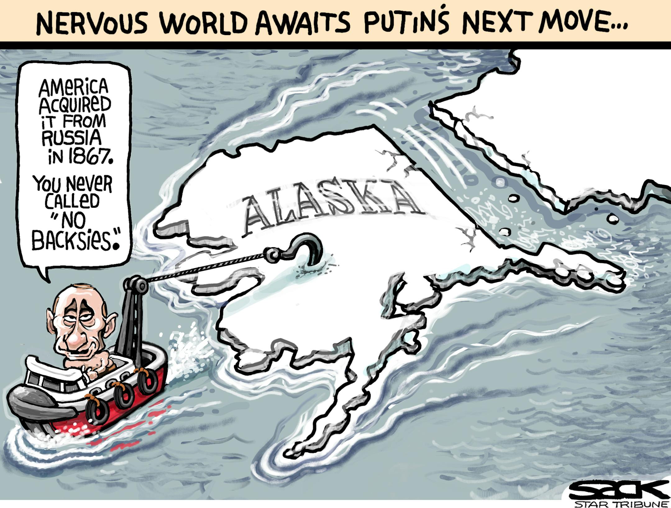 Sack cartoon: Ukraine … Alaska …