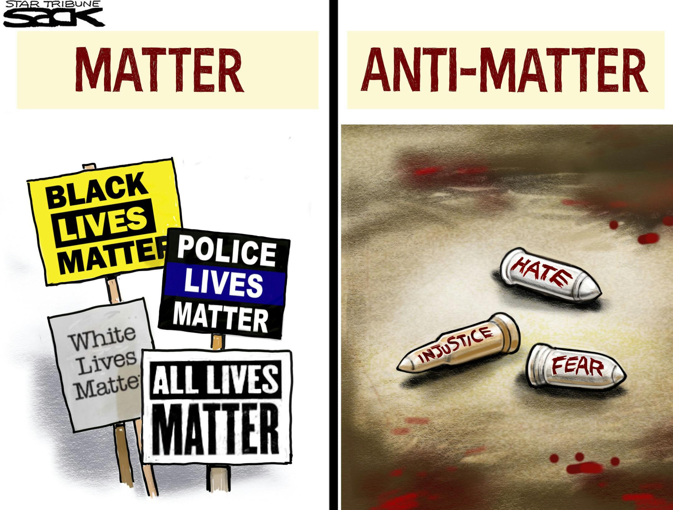 Sack cartoon: Violence and division