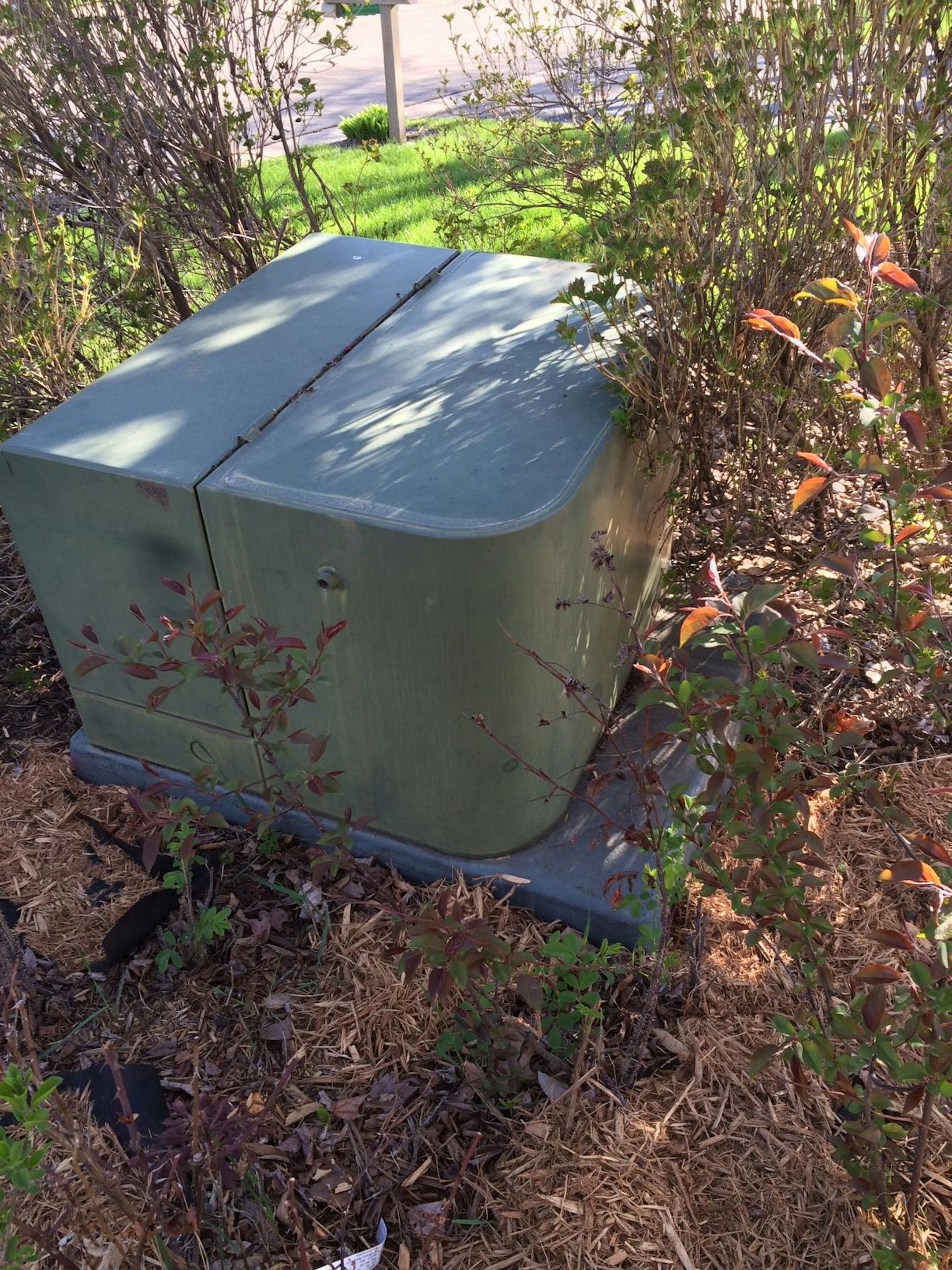 After my lawn gets marked, I can dig in without fear. This time, I think I'll try some of the Knock-Out series of shrub roses to shroud the unsightly green box with flowers from spring to fall.