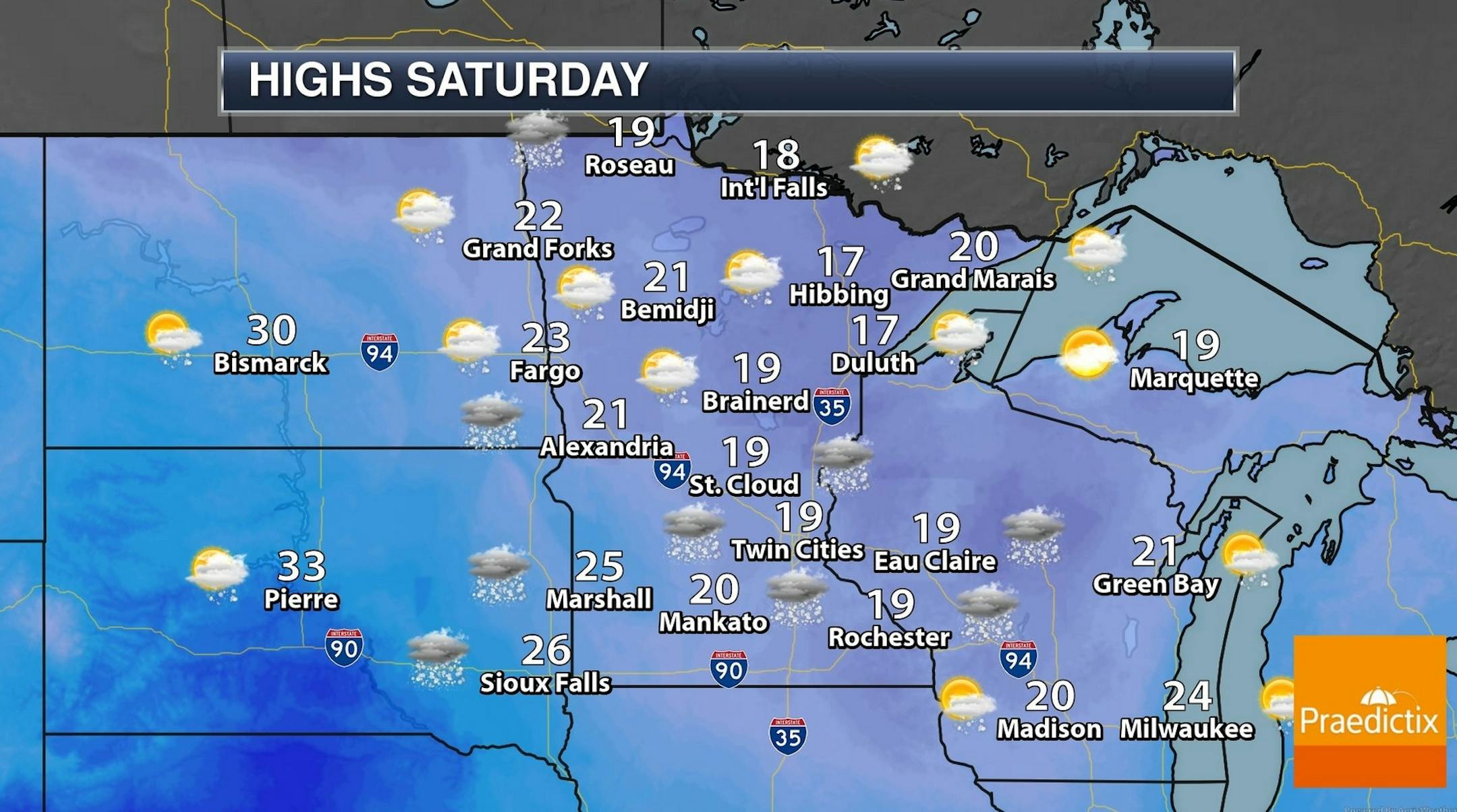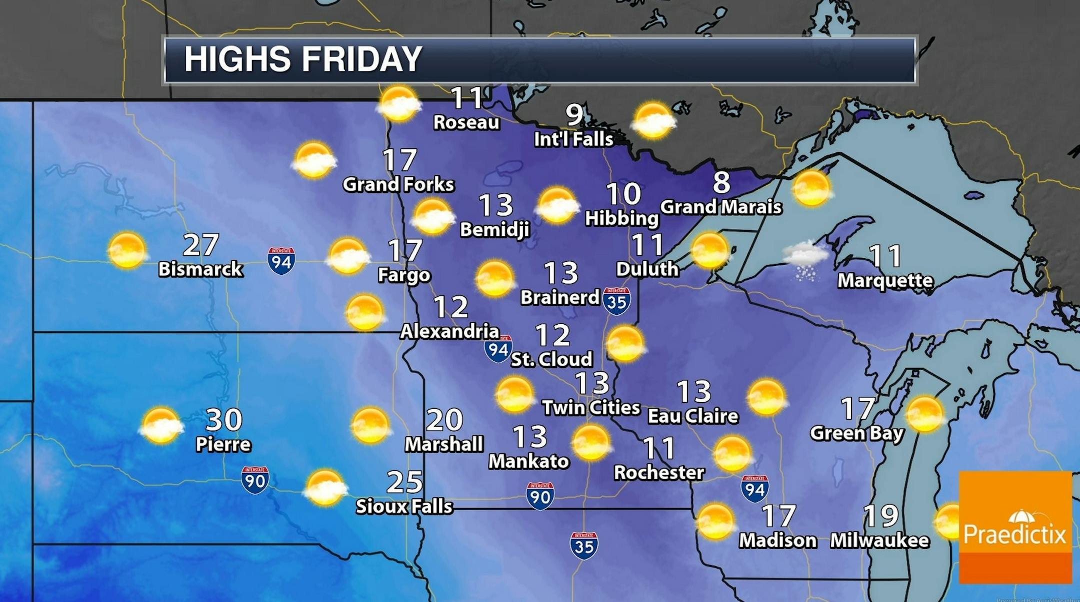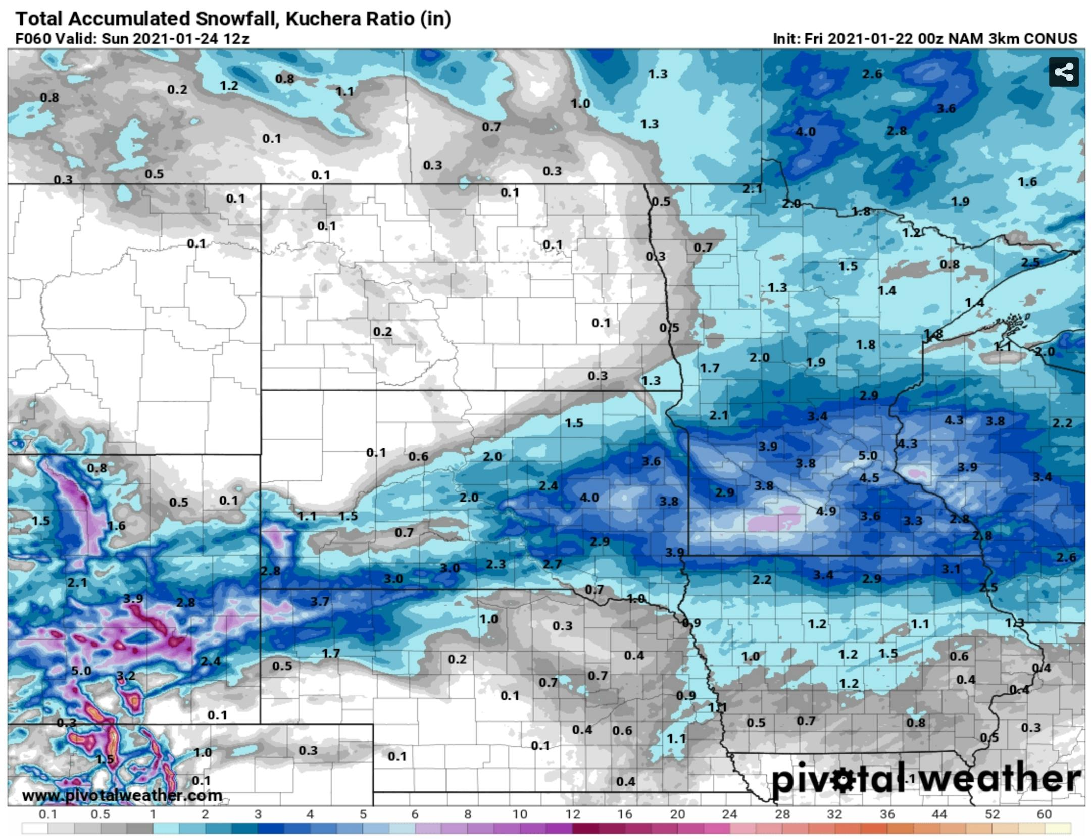 This time around we'll have a dome of arctic air in place for Saturday's snowfall. I'm getting my errands done Saturday morning, because snow arrives in the afternoon and continues Saturday night - a light, powdery fluffy snow. Models suggest 3-6 inches, with the best chance of 5 or 6 inches south of the MSP metro.