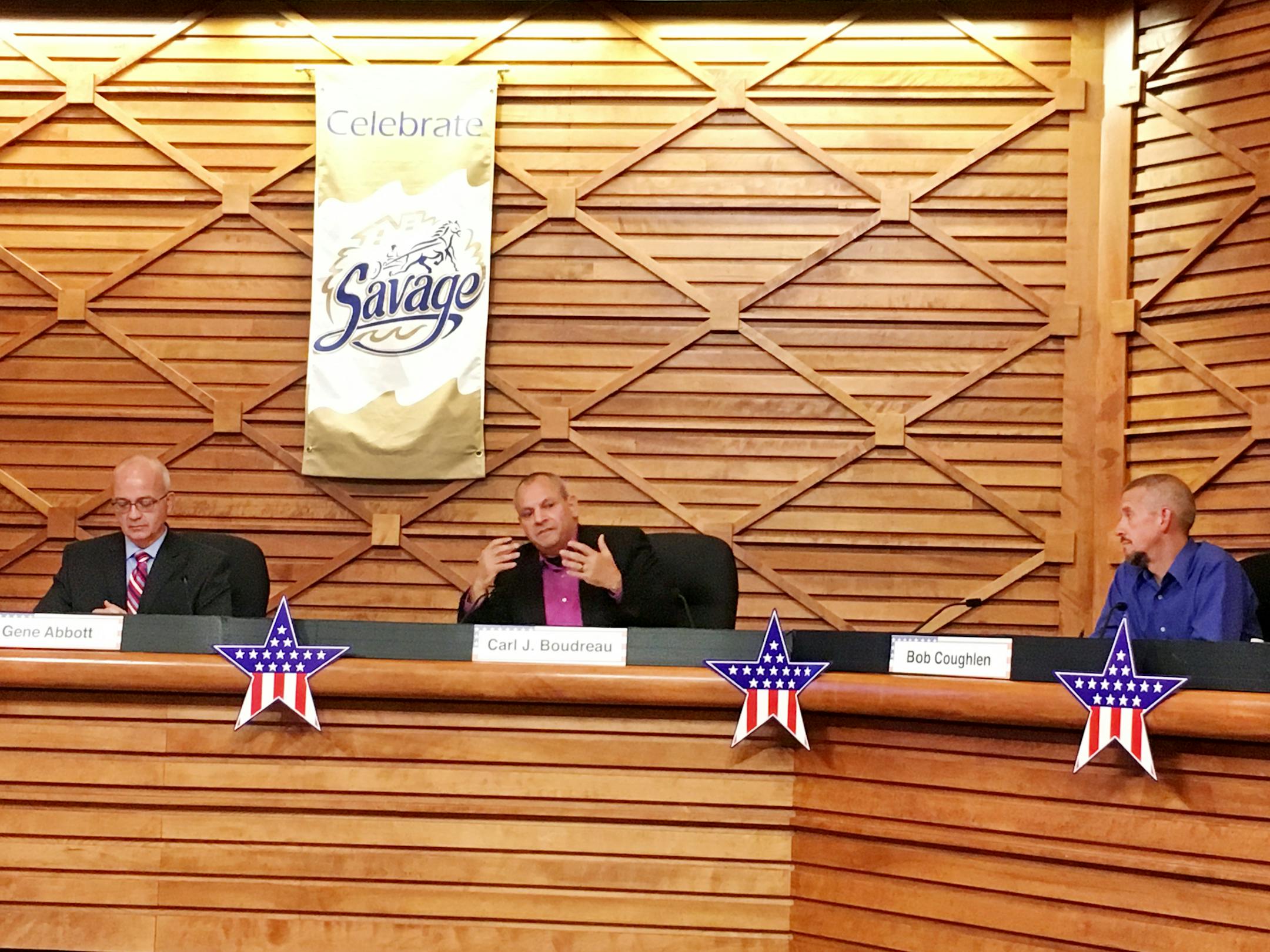 During a one-hour forum moderated by the Savage Chamber of Commerce, candidates had two minutes to discuss topics ranging from municipal liquor sales, the demand for affordable housing and how to implement police body cameras.