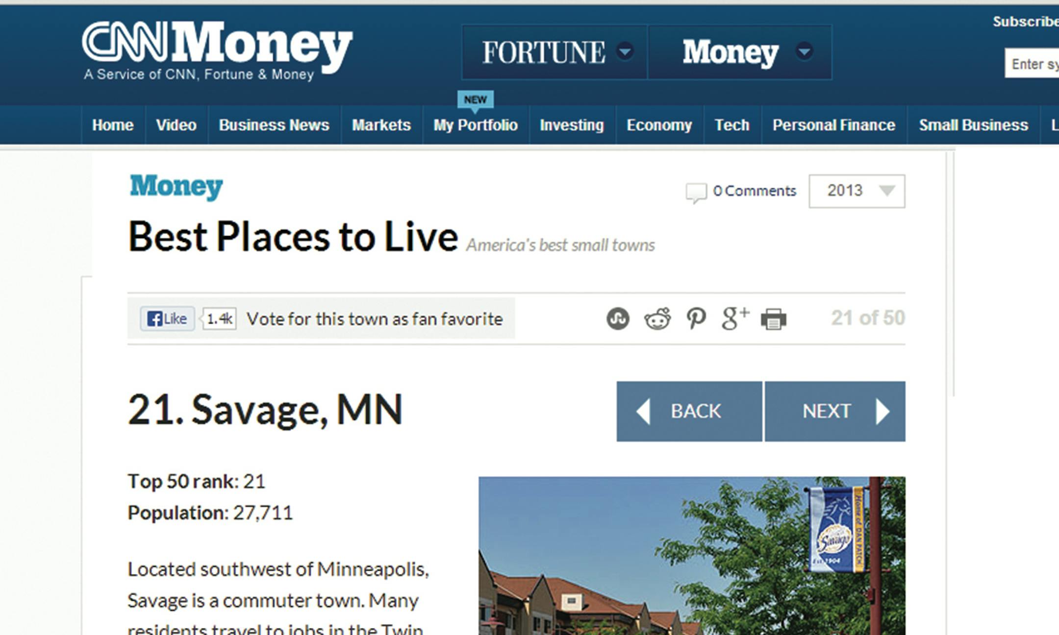 The powers that be in Savage were thrilled this summer to learn that on a national ranking of the nation's best small cities, theirs had jumped from 51st place to 21st, making them one of just three Minnesota communities among the top 50.