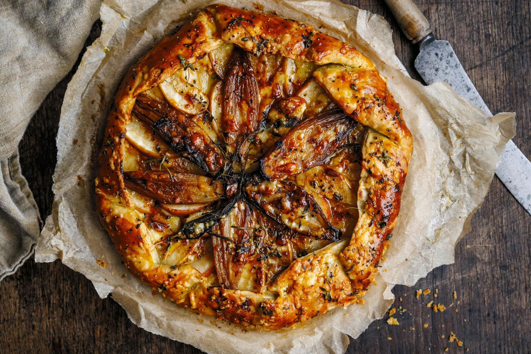 From “The Farm Kitchen” by Abby Allen, who writes: “This recipe is a real celebration of autumn. It’s a sweet–savory combo that I find incredibly moreish, and works equally well hot from the oven as it does cold as leftovers, giving you plenty of flexibility for how and when you want to serve it." You’ll need to start this recipe in advance to give the dough time to chill. (Kyle Books, 2025)