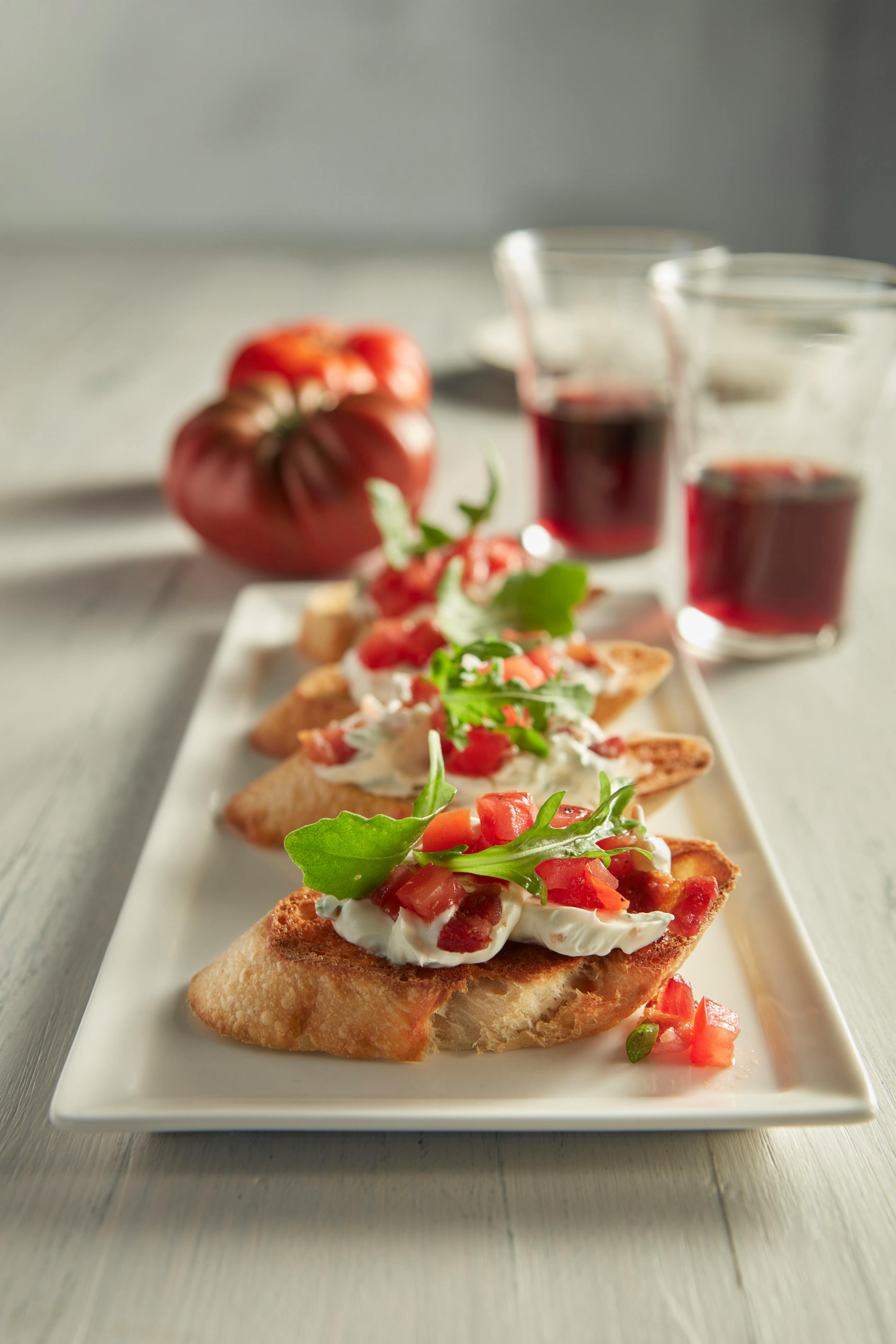 Let’s start with BLT Bruschetta. It’s hard to improve on a classic summer BLT, but turning it into an appetizer with a creamy, bacon-laced spread under juicy, ripe, flavorful tomatoes and basil might just do it.