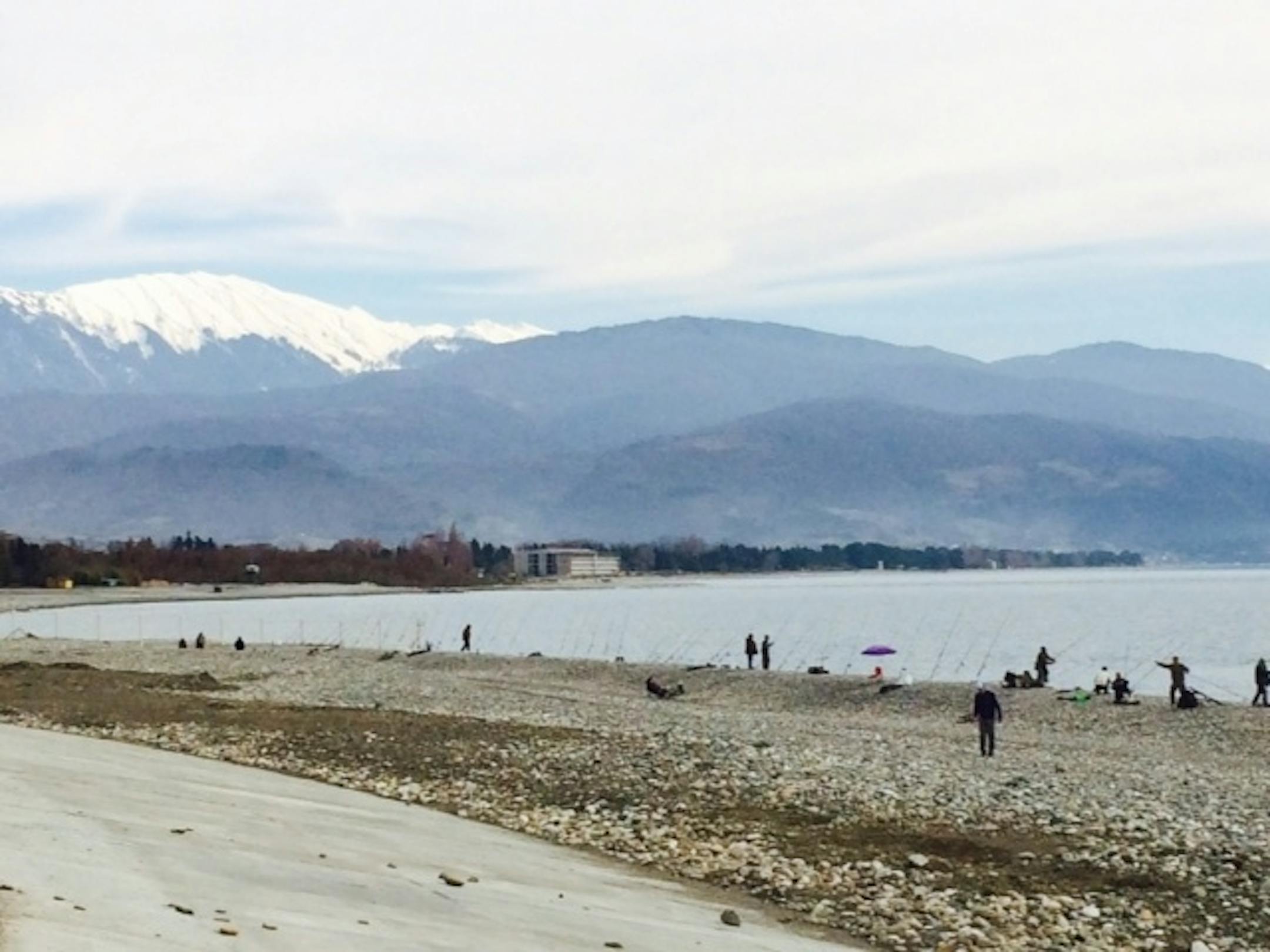 A couple of days ago, I had a little time to spare before heading to Olympic Park. The Black Sea is only about a block away from the media village (now dubbed the "media gulag" by Marriott-loyal American reporters), so I headed to the shore.